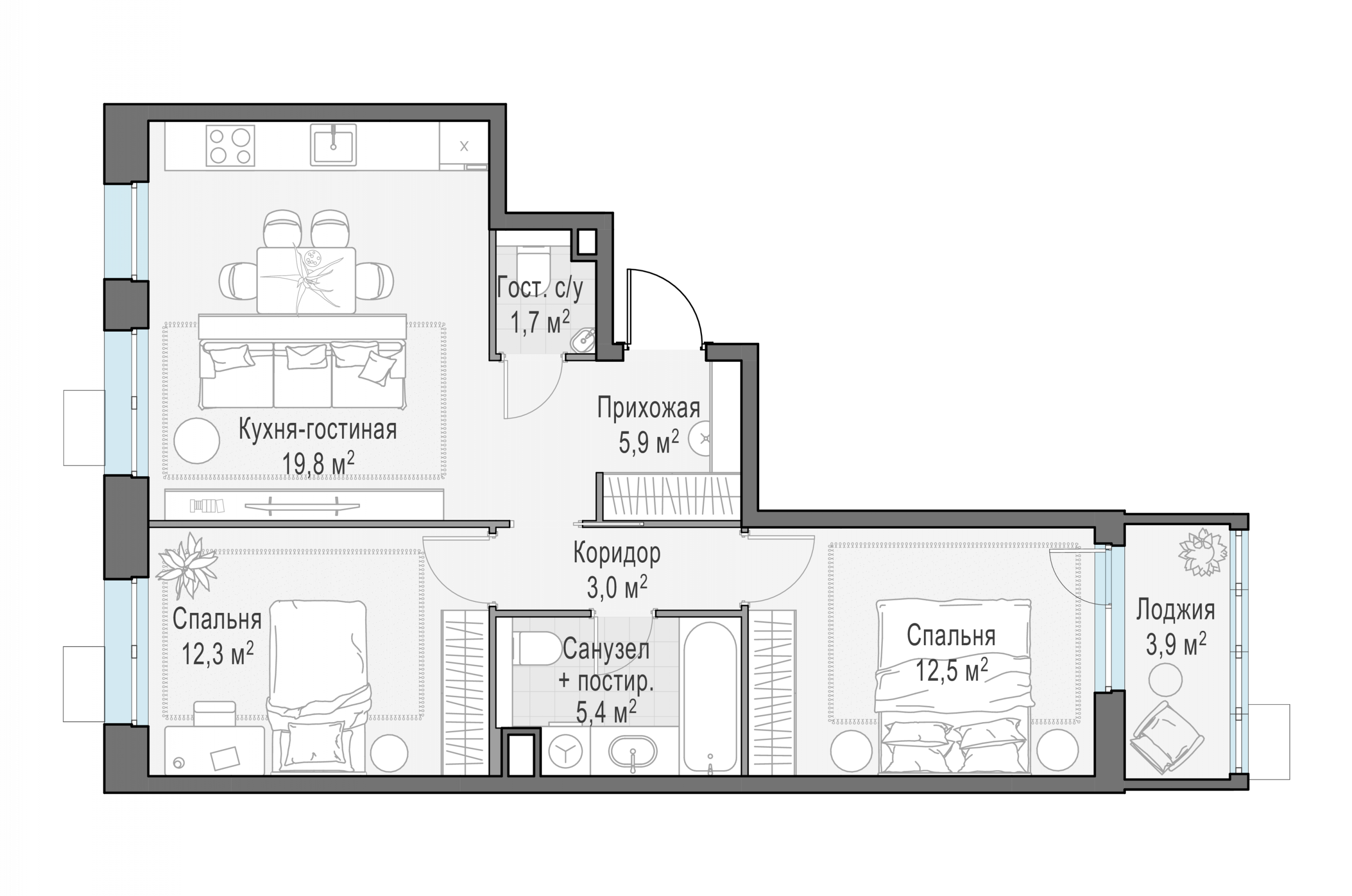 Представленные планировочные решения носят иллюстративный характер. Застройщик передаёт объект с планировкой, указанной в договоре участия в долевом строительстве. Любая перепланировка должна соответствовать требованиям государственных органов.