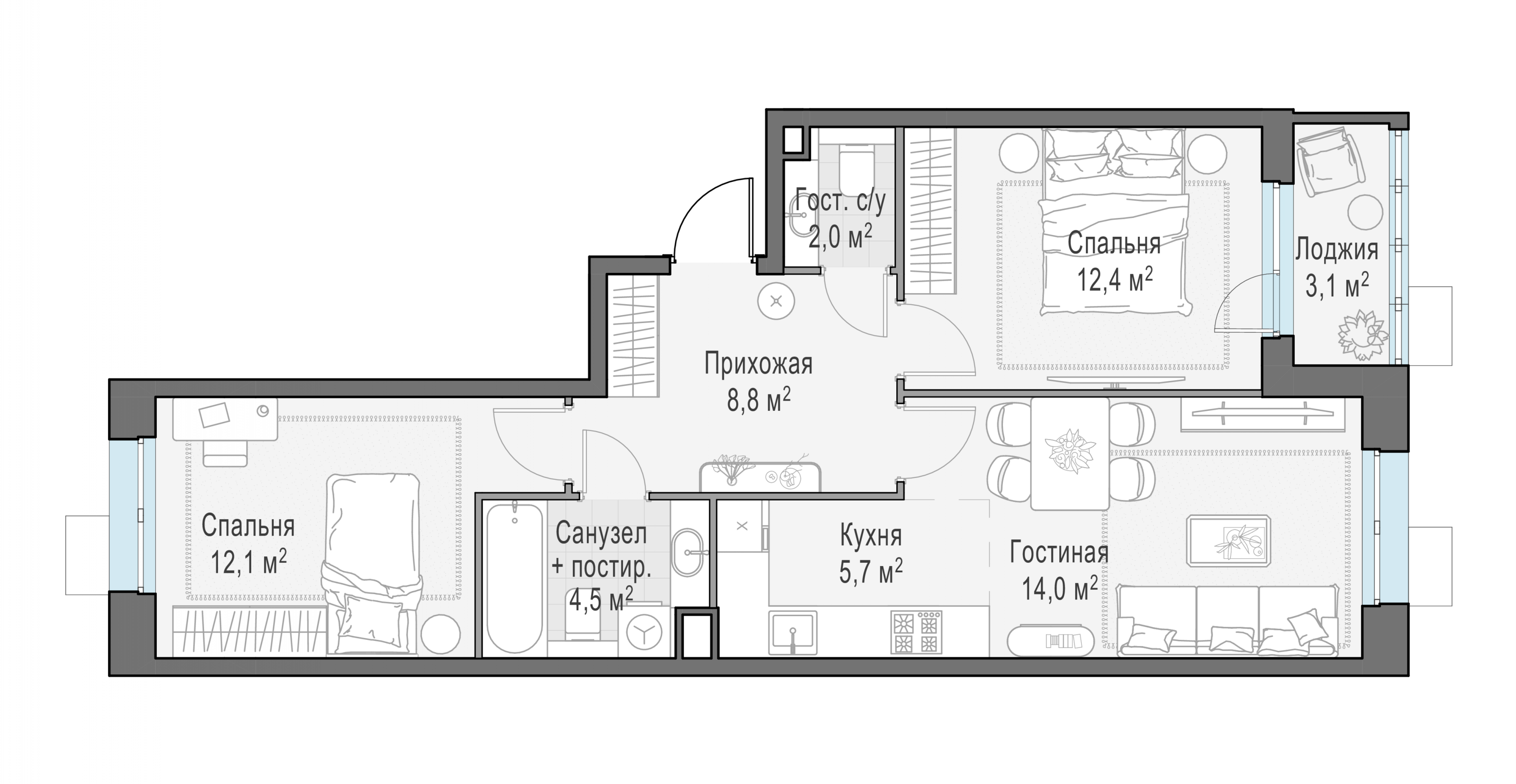 Представленные планировочные решения носят иллюстративный характер. Застройщик передаёт объект с планировкой, указанной в договоре участия в долевом строительстве. Любая перепланировка должна соответствовать требованиям государственных органов.