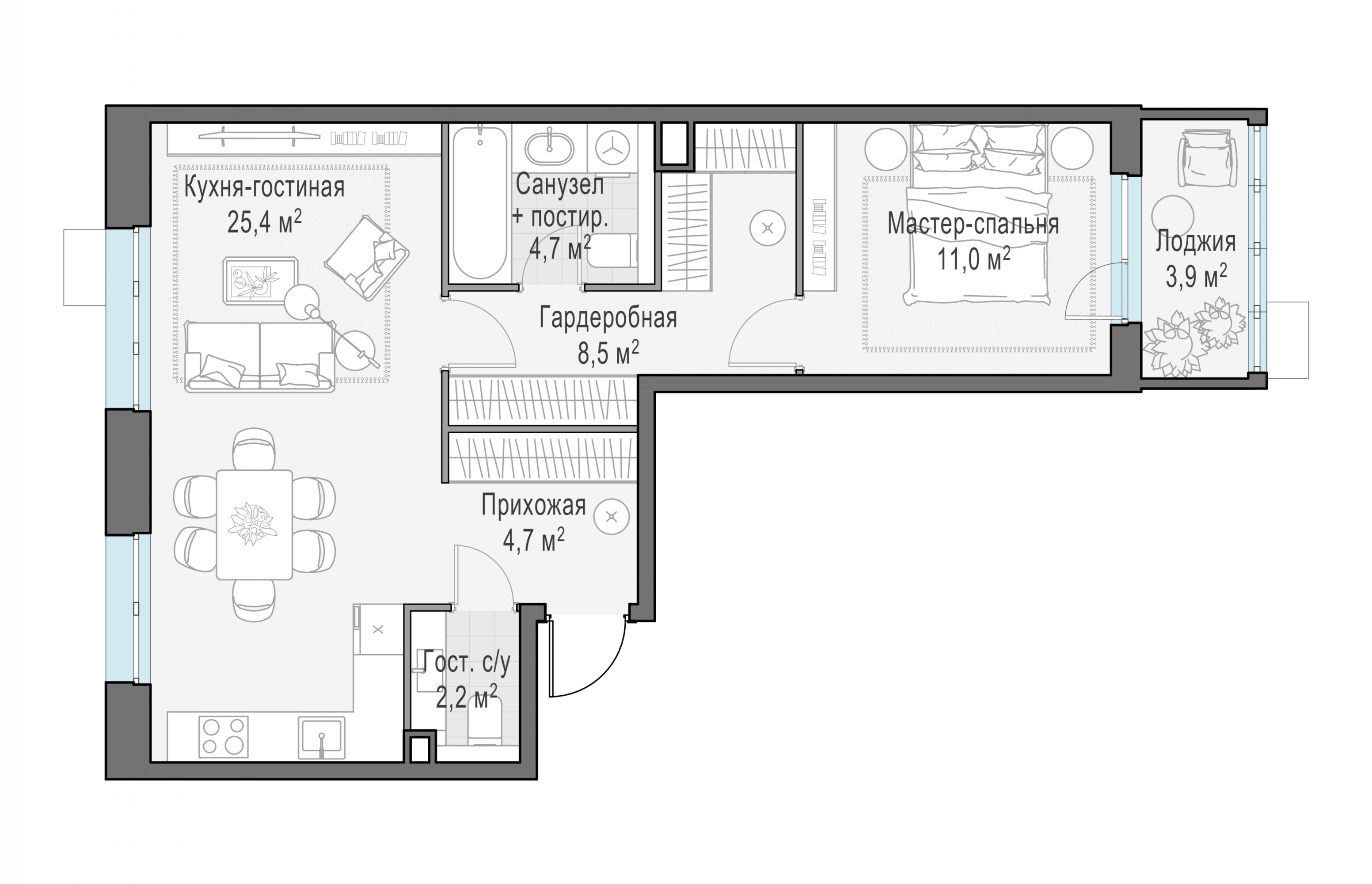 Представленные планировочные решения носят иллюстративный характер. Застройщик передаёт объект с планировкой, указанной в договоре участия в долевом строительстве. Любая перепланировка должна соответствовать требованиям государственных органов.