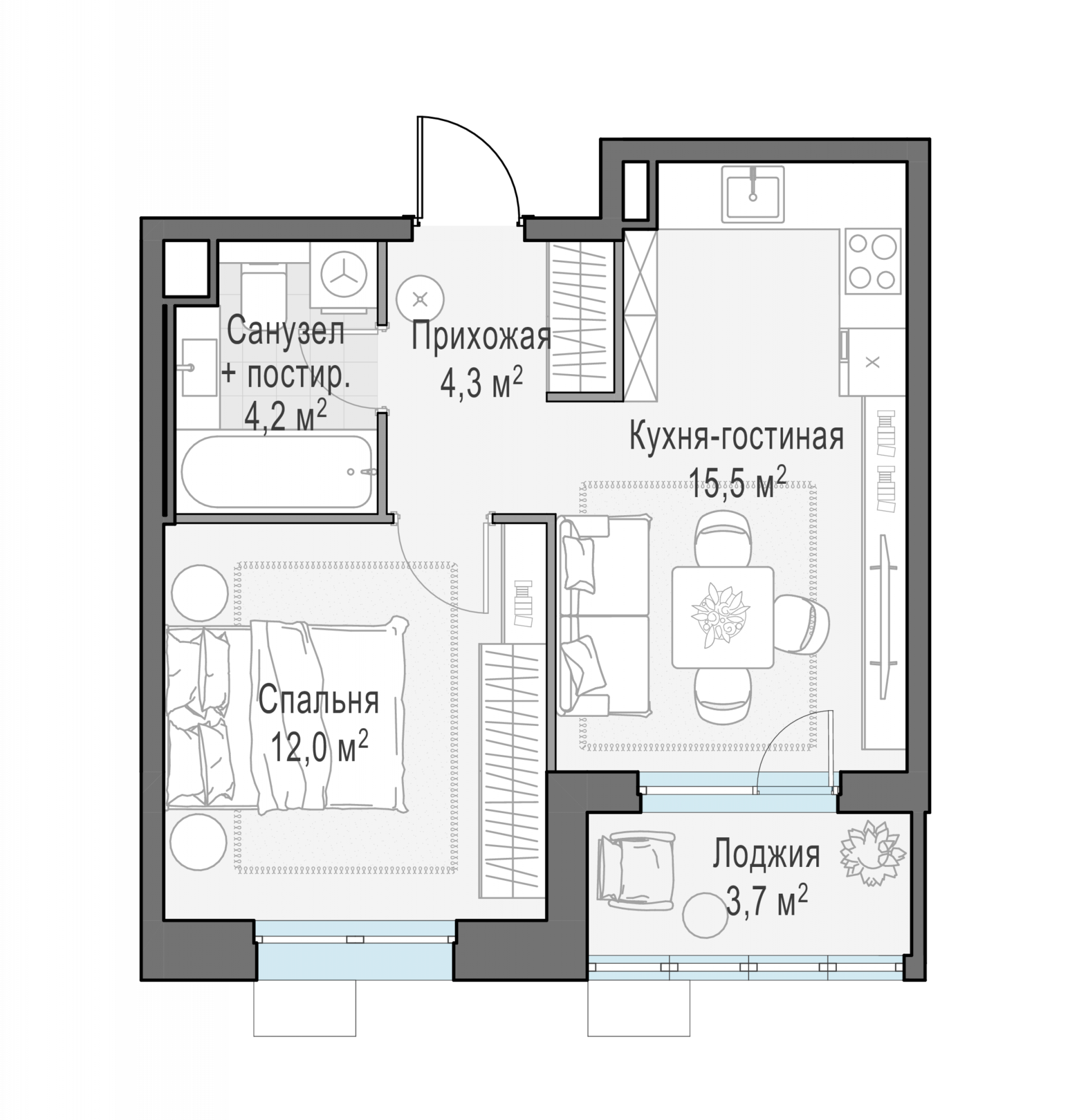 Представленные планировочные решения носят иллюстративный характер. Застройщик передаёт объект с планировкой, указанной в договоре участия в долевом строительстве. Любая перепланировка должна соответствовать требованиям государственных органов.