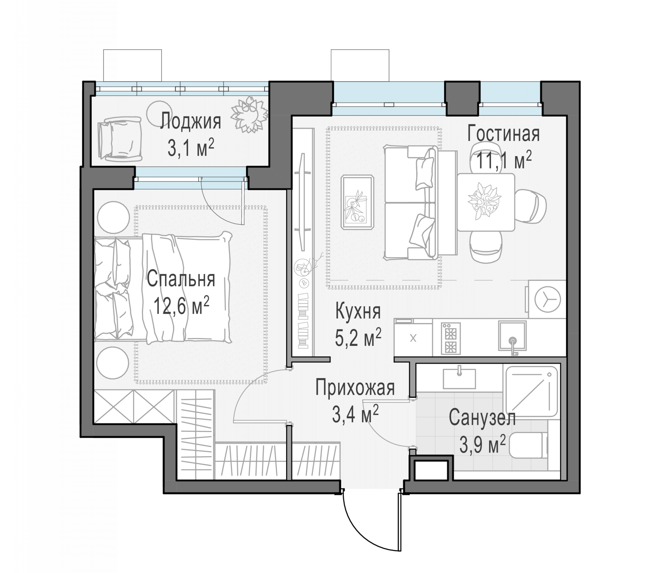 Представленные планировочные решения носят иллюстративный характер. Застройщик передаёт объект с планировкой, указанной в договоре участия в долевом строительстве. Любая перепланировка должна соответствовать требованиям государственных органов.