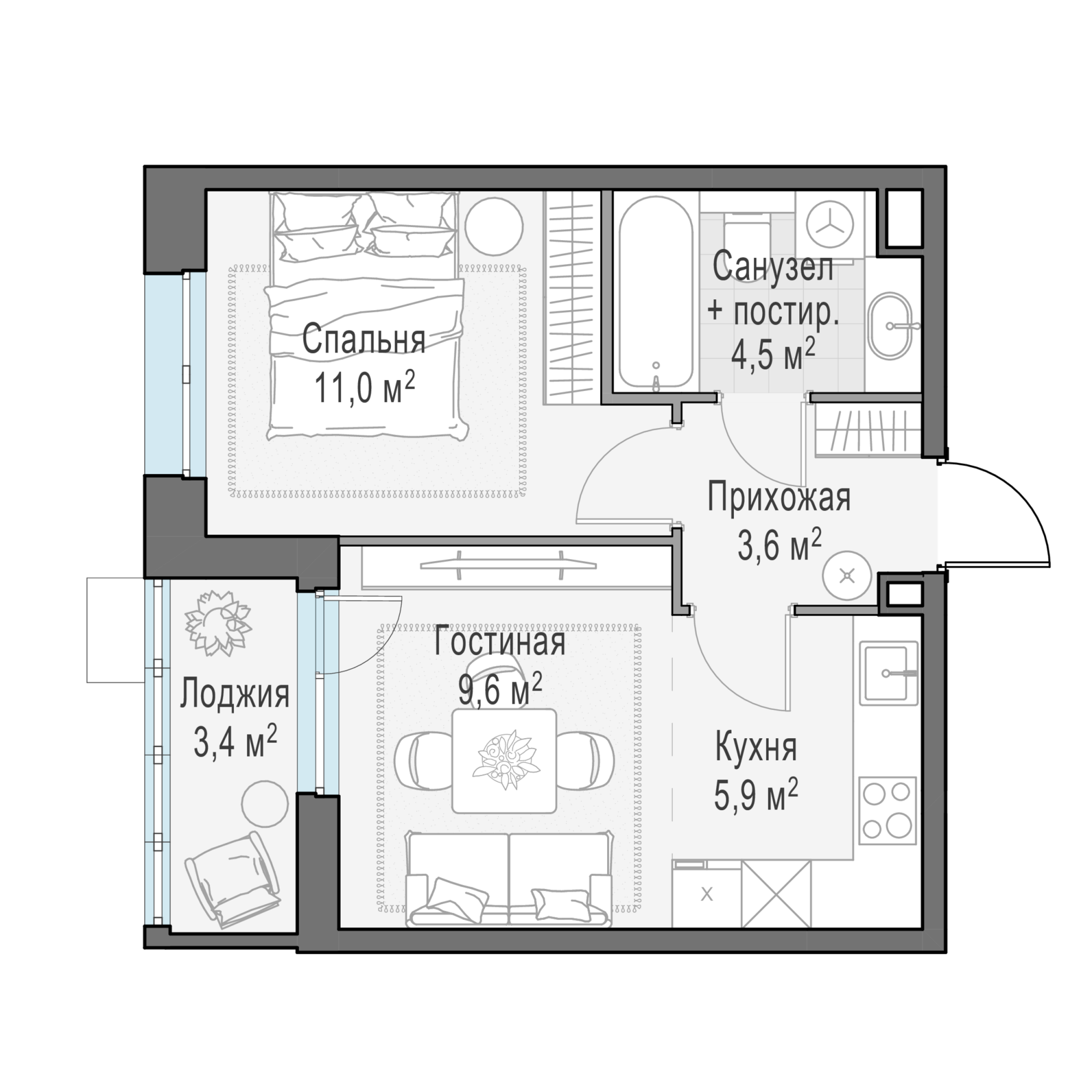 Представленные планировочные решения носят иллюстративный характер. Застройщик передаёт объект с планировкой, указанной в договоре участия в долевом строительстве. Любая перепланировка должна соответствовать требованиям государственных органов.