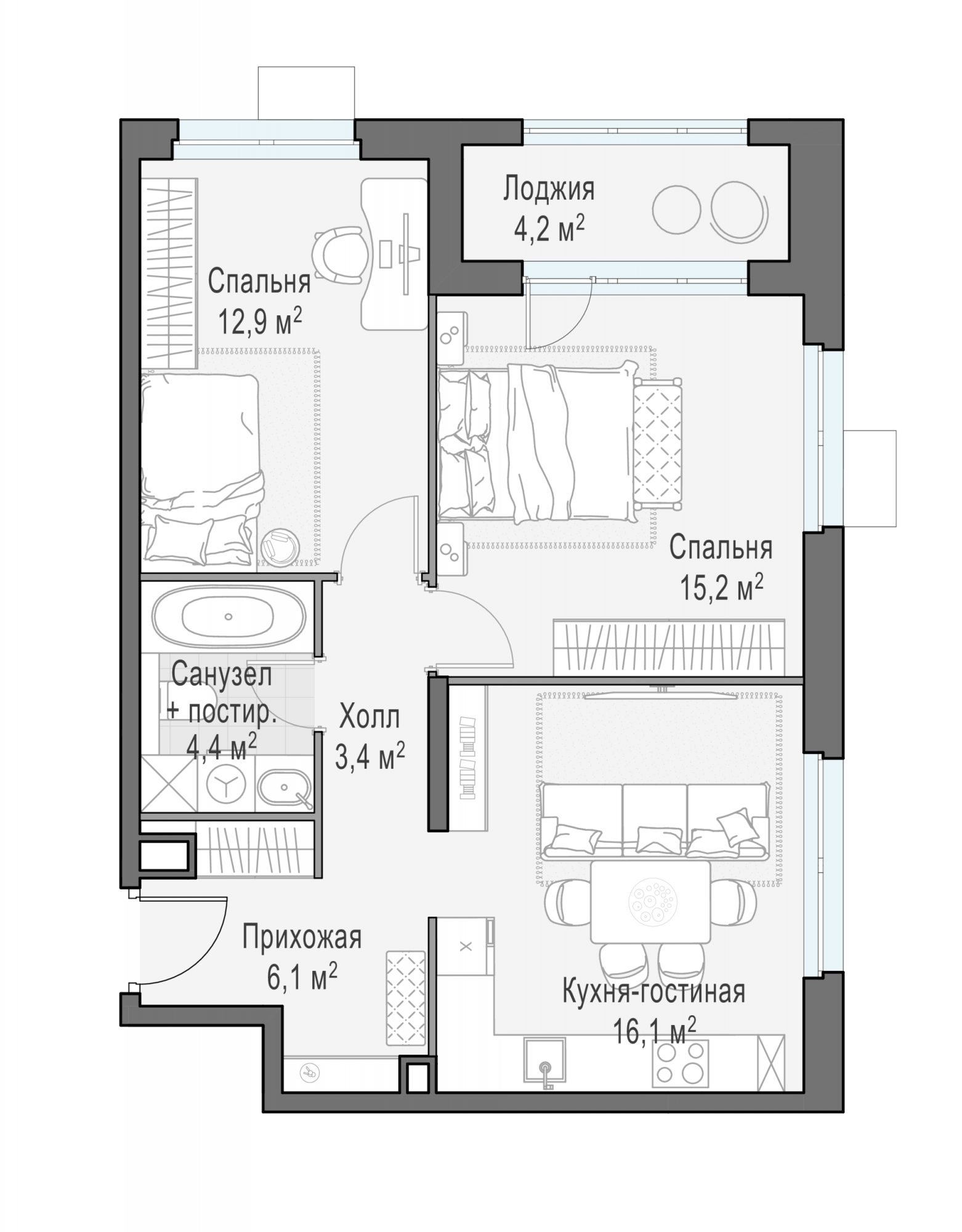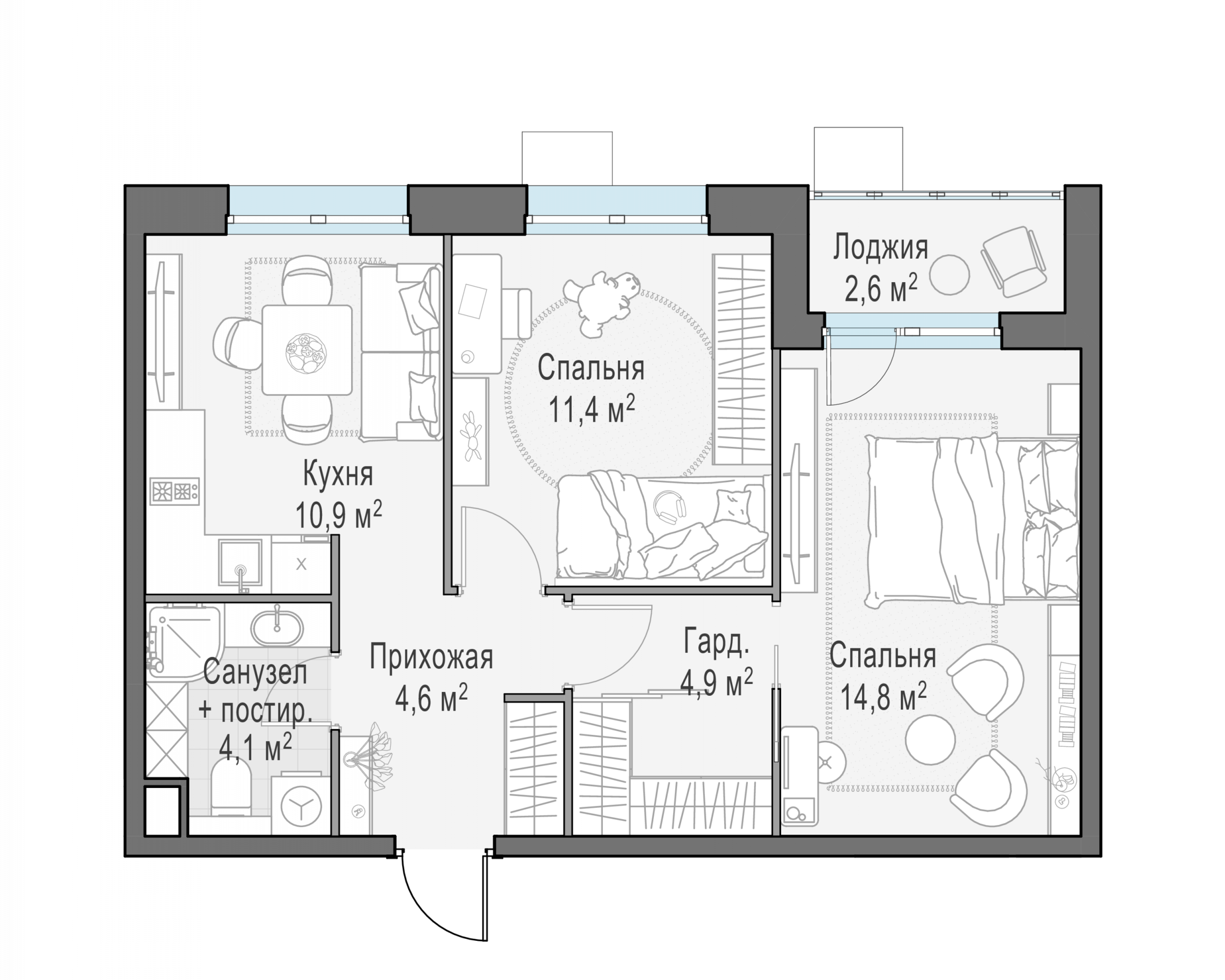 Представленные планировочные решения носят иллюстративный характер. Застройщик передаёт объект с планировкой, указанной в договоре участия в долевом строительстве. Любая перепланировка должна соответствовать требованиям государственных органов.