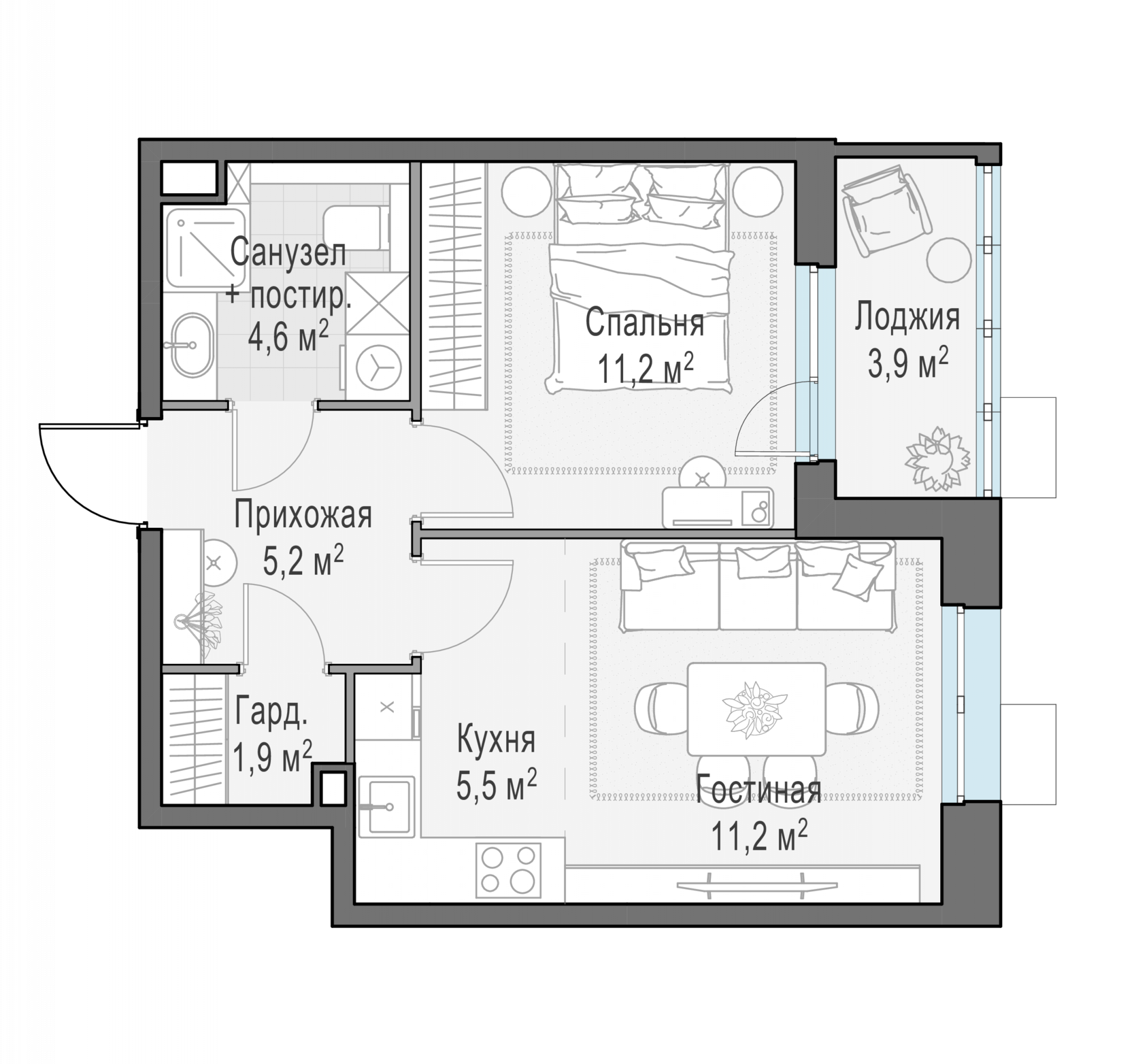 Представленные планировочные решения носят иллюстративный характер. Застройщик передаёт объект с планировкой, указанной в договоре участия в долевом строительстве. Любая перепланировка должна соответствовать требованиям государственных органов.
