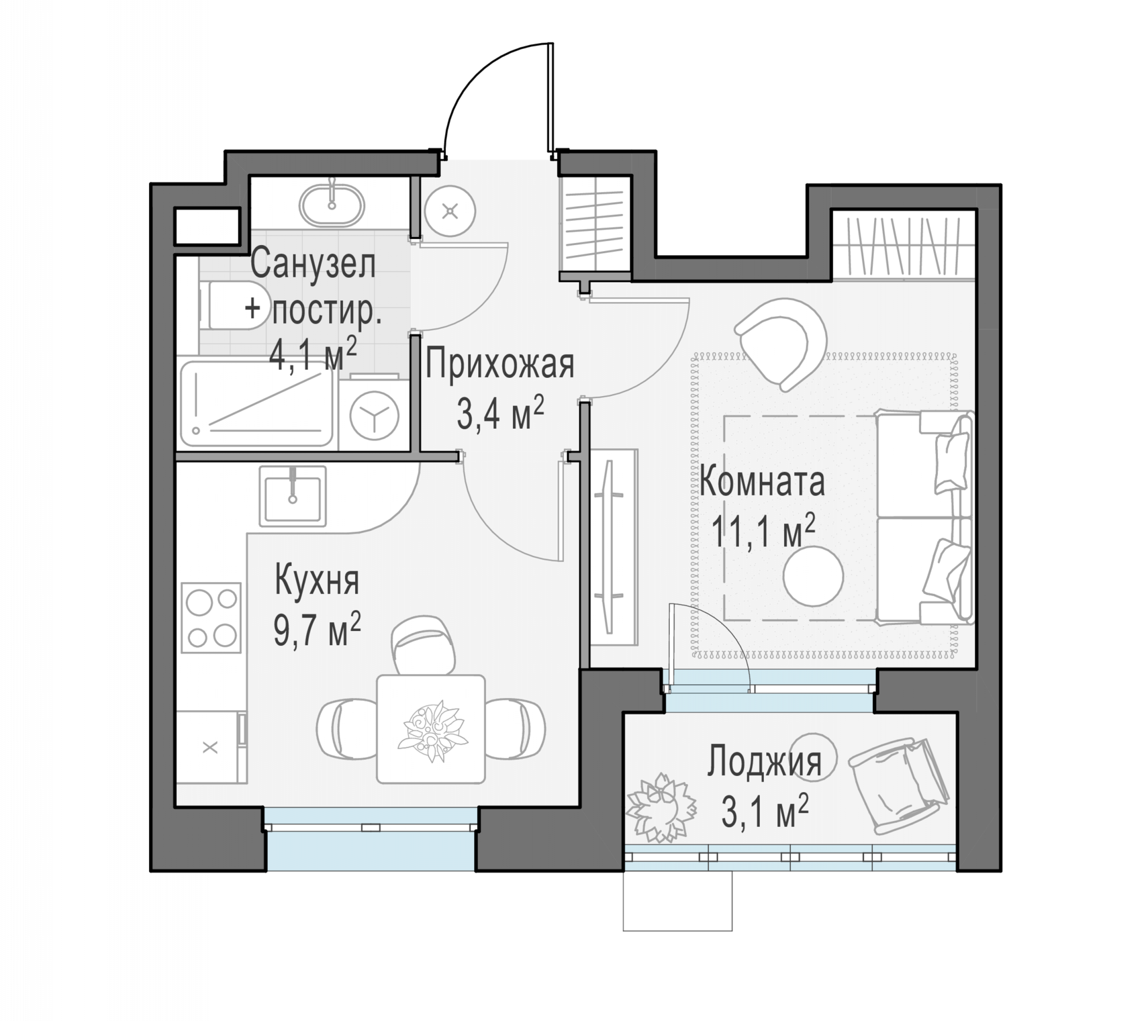 Представленные планировочные решения носят иллюстративный характер. Застройщик передаёт объект с планировкой, указанной в договоре участия в долевом строительстве. Любая перепланировка должна соответствовать требованиям государственных органов.