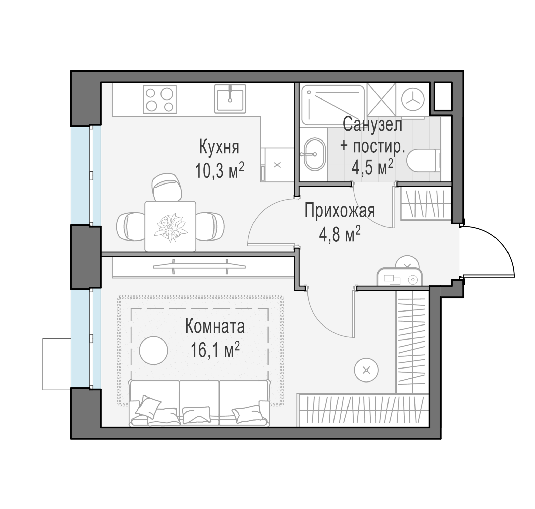 Представленные планировочные решения носят иллюстративный характер. Застройщик передаёт объект с планировкой, указанной в договоре участия в долевом строительстве. Любая перепланировка должна соответствовать требованиям государственных органов.