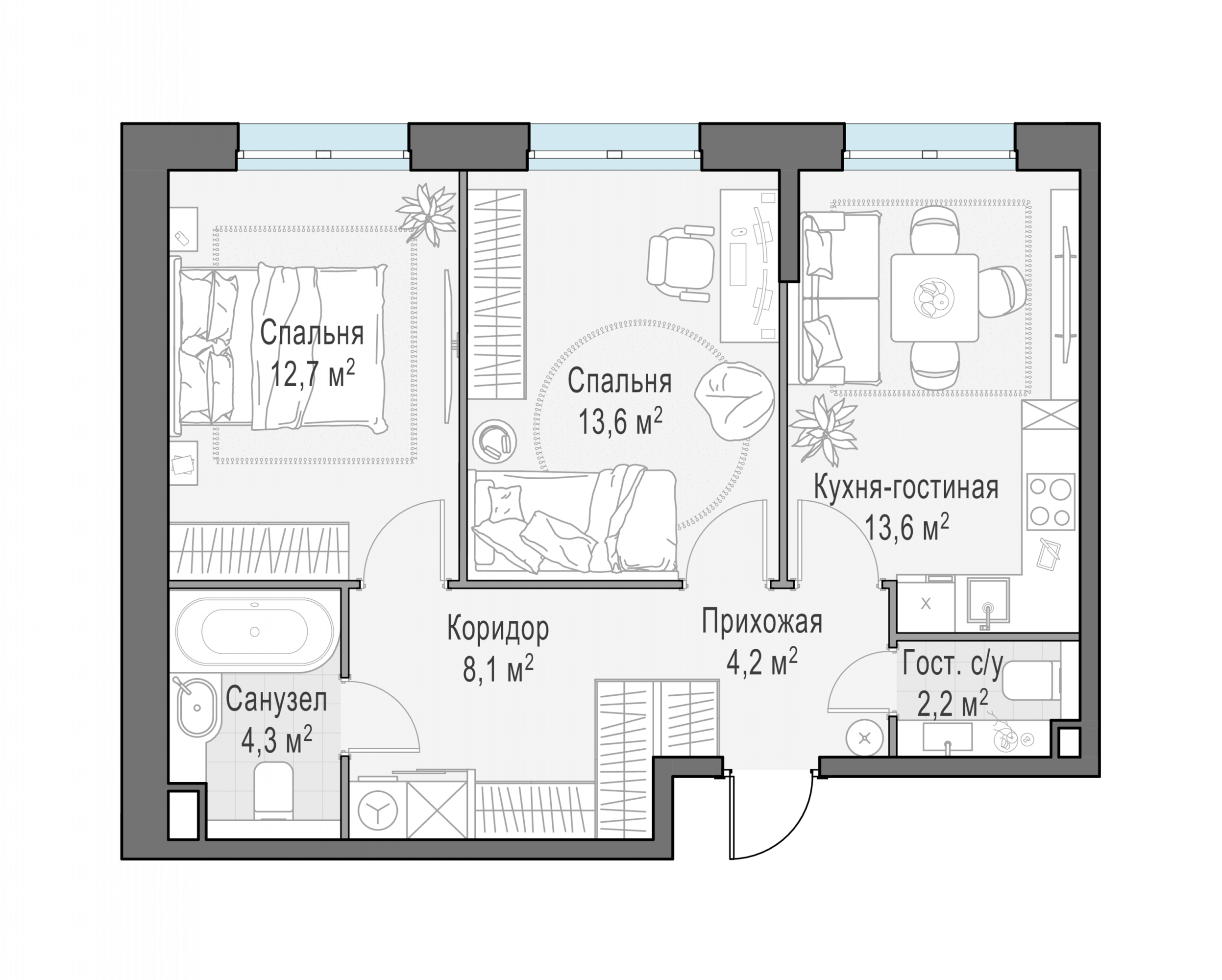 Представленные планировочные решения носят иллюстративный характер. Застройщик передаёт объект с планировкой, указанной в договоре участия в долевом строительстве. Любая перепланировка должна соответствовать требованиям государственных органов.