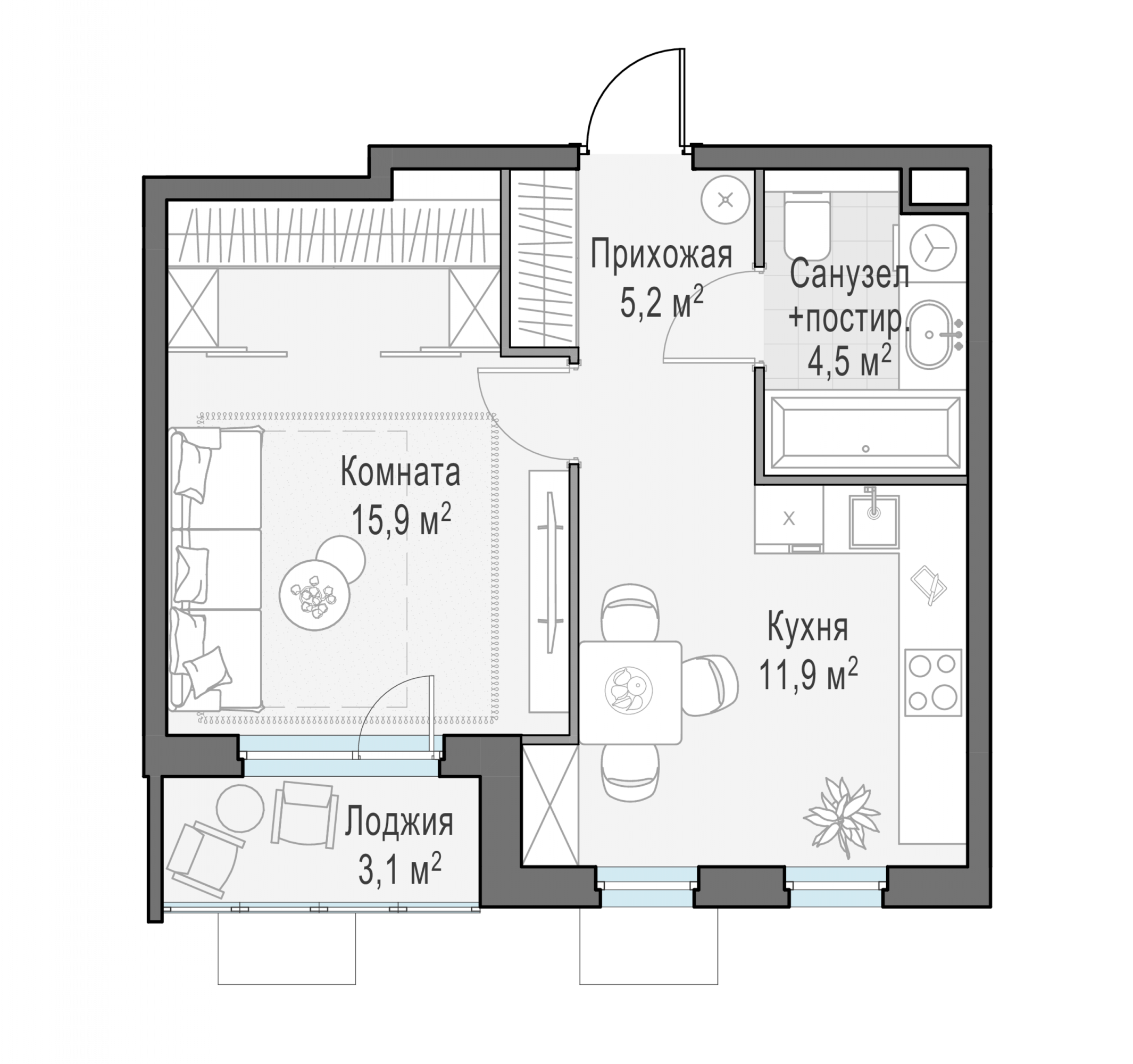 Представленные планировочные решения носят иллюстративный характер. Застройщик передаёт объект с планировкой, указанной в договоре участия в долевом строительстве. Любая перепланировка должна соответствовать требованиям государственных органов.