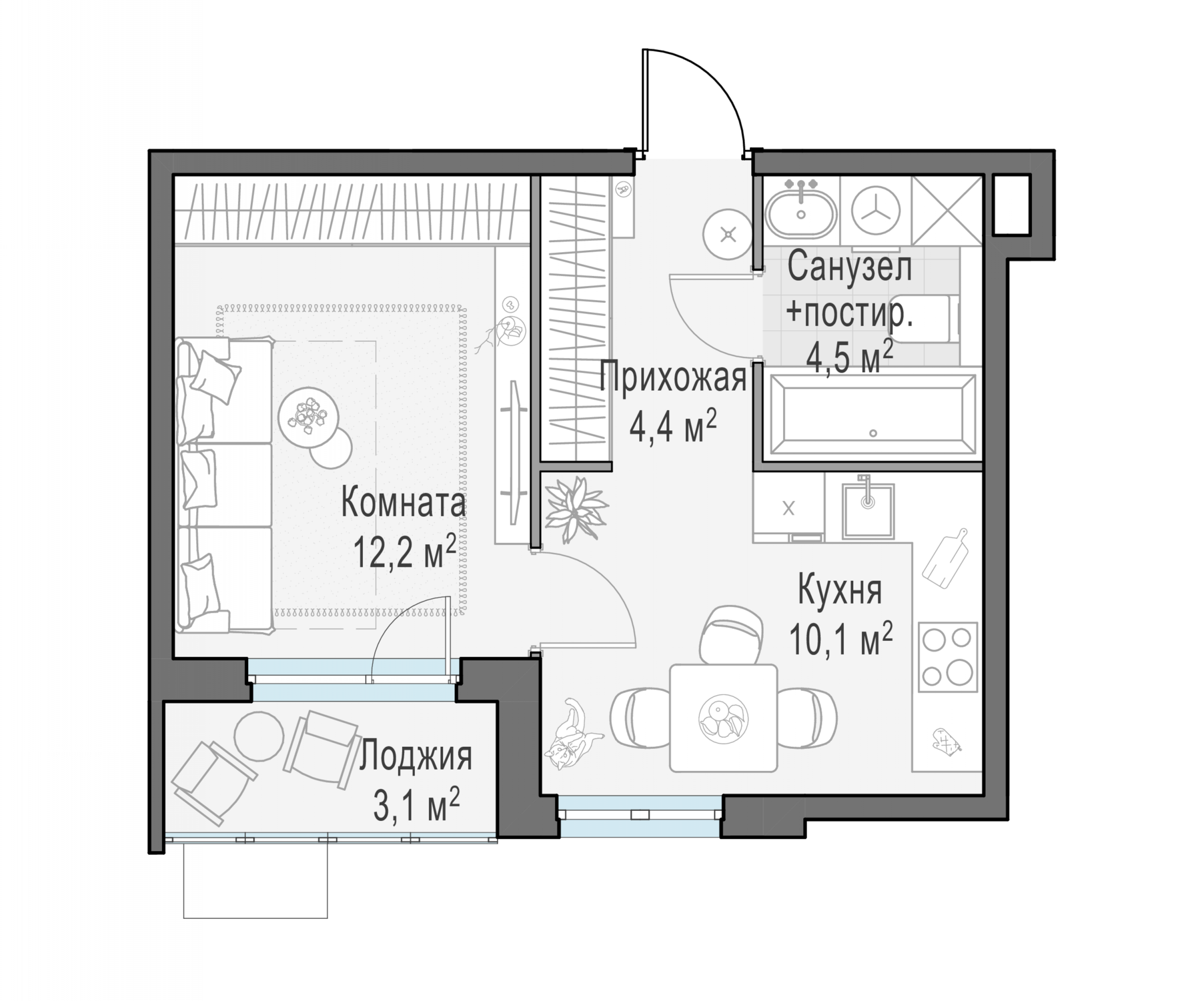 Представленные планировочные решения носят иллюстративный характер. Застройщик передаёт объект с планировкой, указанной в договоре участия в долевом строительстве. Любая перепланировка должна соответствовать требованиям государственных органов.