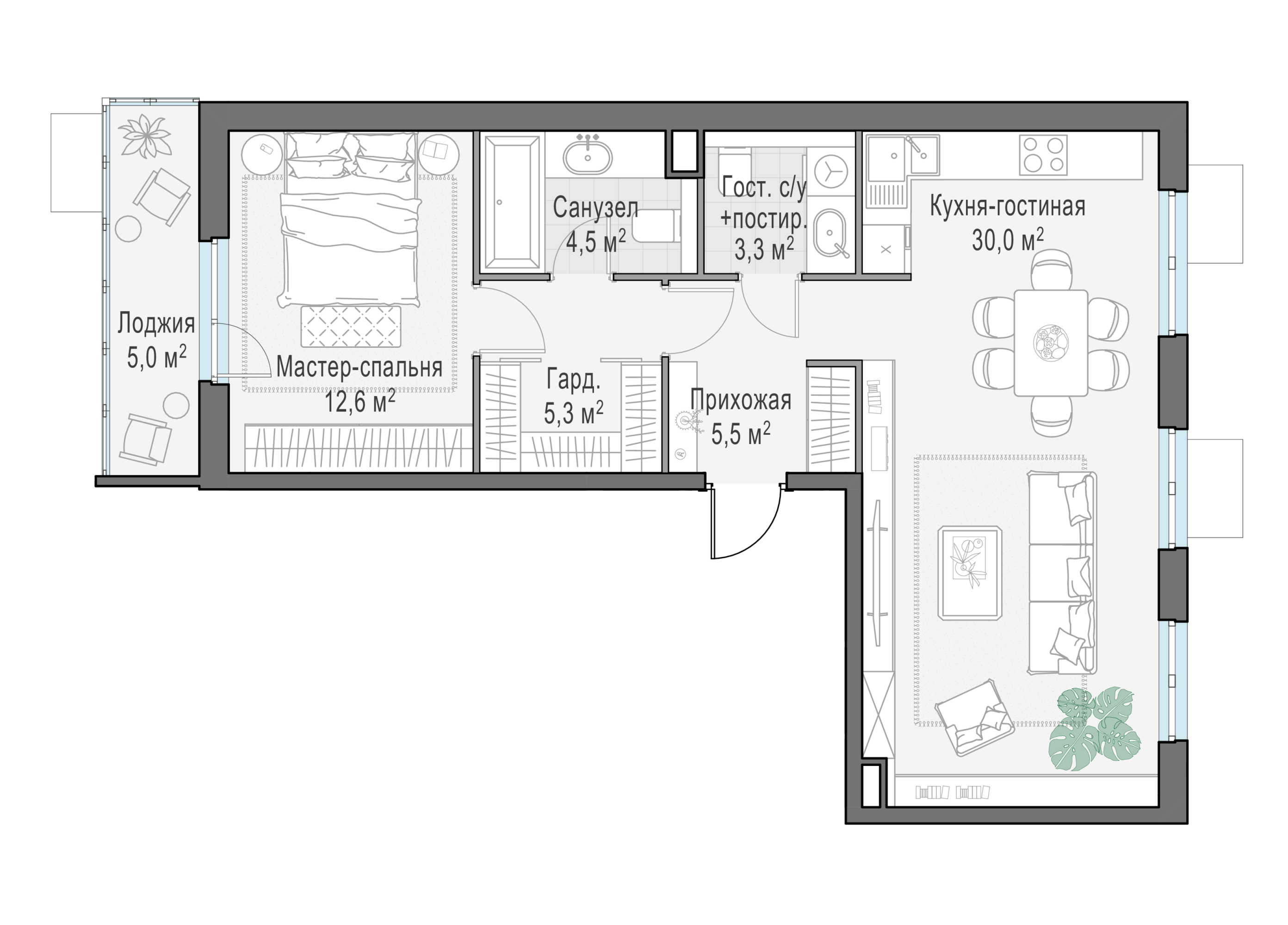 Представленные планировочные решения носят иллюстративный характер. Застройщик передаёт объект с планировкой, указанной в договоре участия в долевом строительстве. Любая перепланировка должна соответствовать требованиям государственных органов.