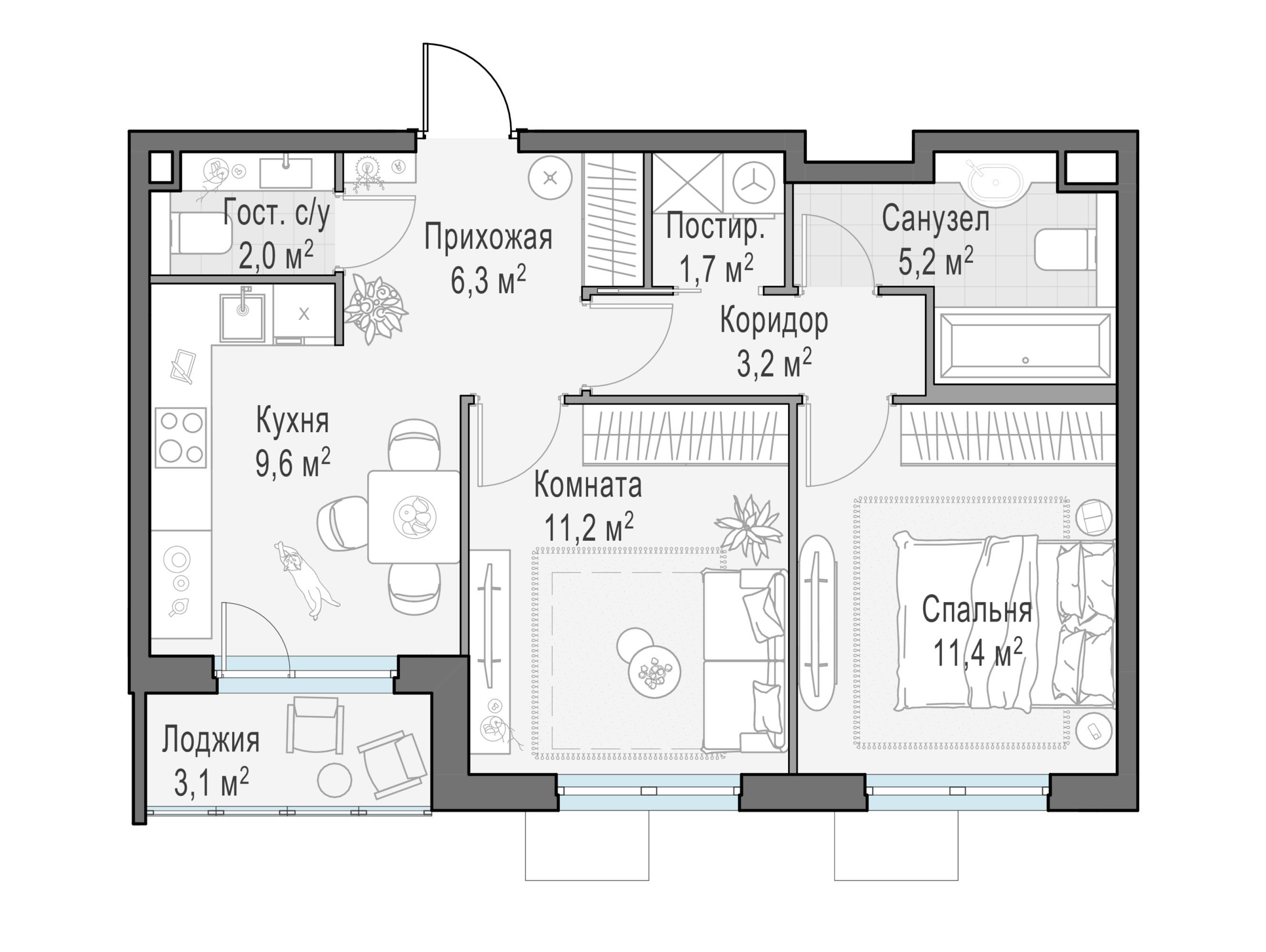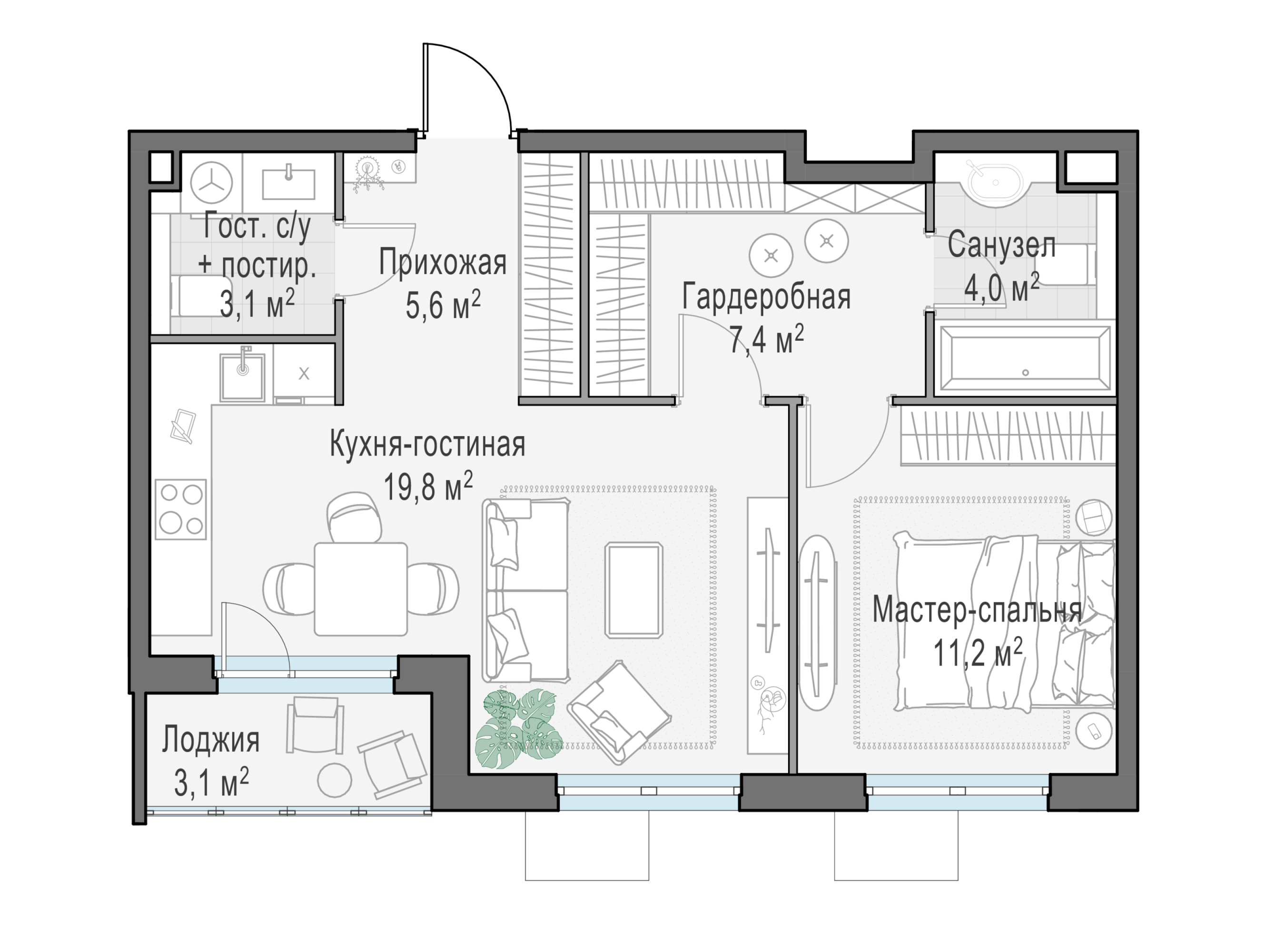 Представленные планировочные решения носят иллюстративный характер. Застройщик передаёт объект с планировкой, указанной в договоре участия в долевом строительстве. Любая перепланировка должна соответствовать требованиям государственных органов.