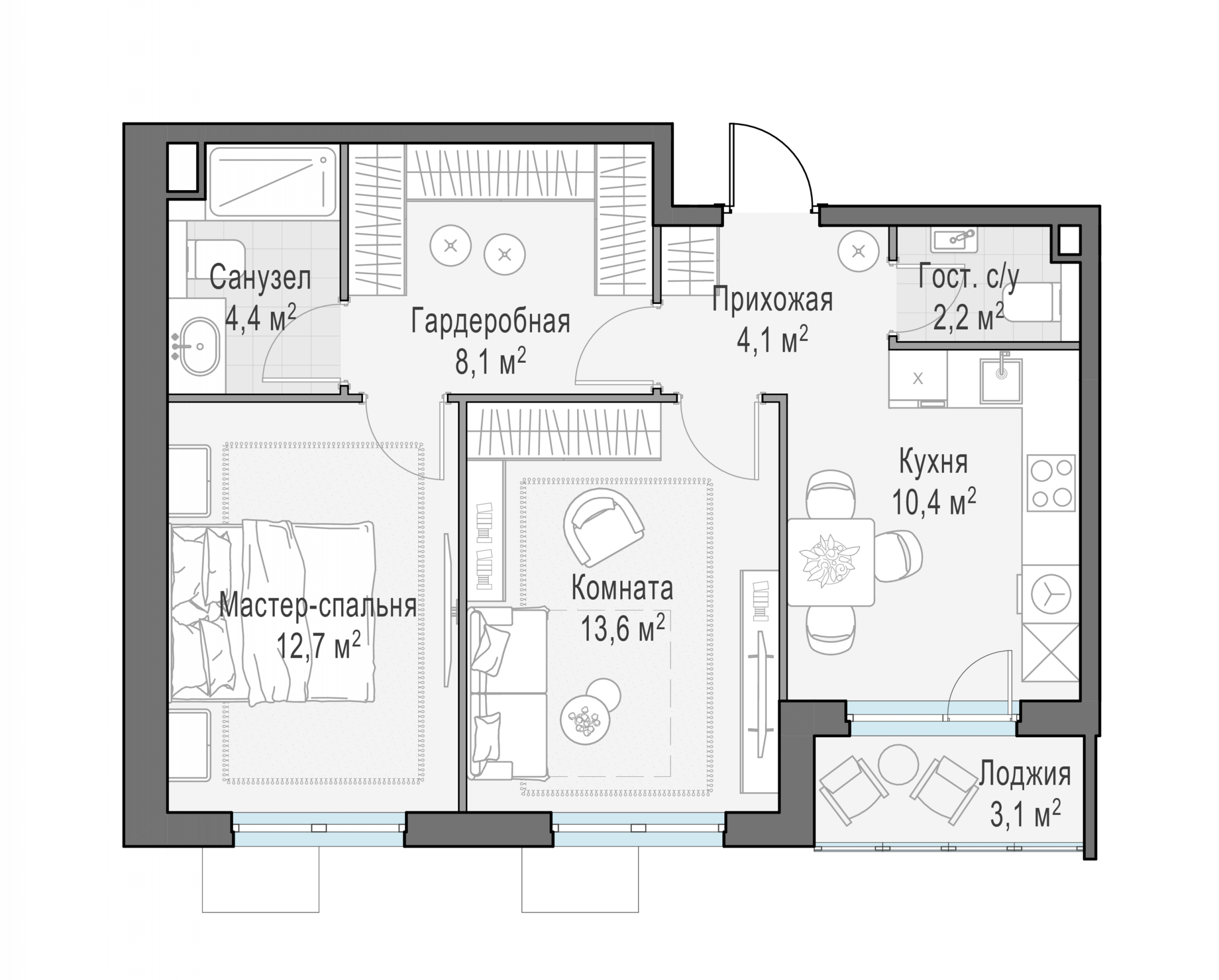 Представленные планировочные решения носят иллюстративный характер. Застройщик передаёт объект с планировкой, указанной в договоре участия в долевом строительстве. Любая перепланировка должна соответствовать требованиям государственных органов.