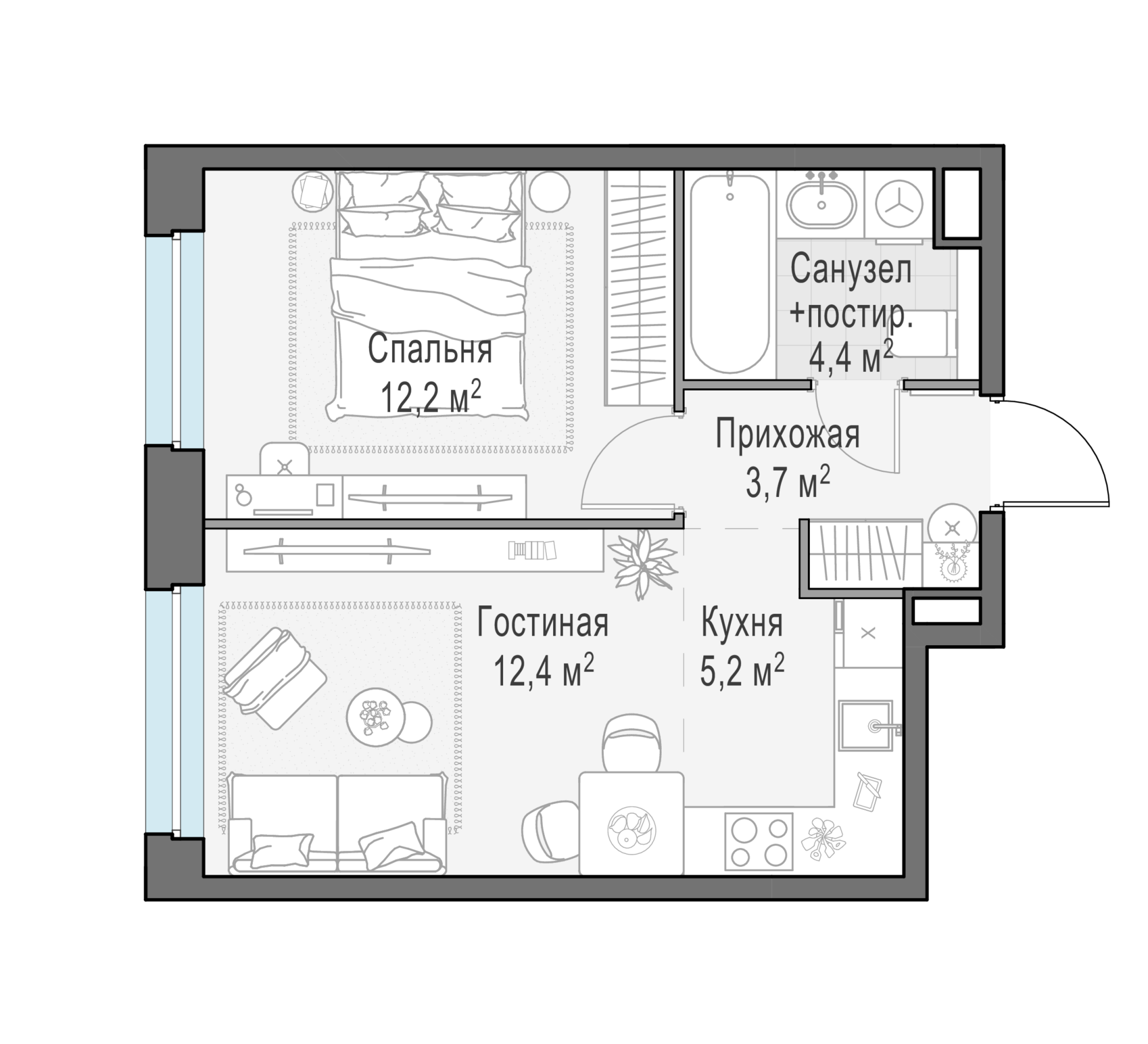 Представленные планировочные решения носят иллюстративный характер. Застройщик передаёт объект с планировкой, указанной в договоре участия в долевом строительстве. Любая перепланировка должна соответствовать требованиям государственных органов.