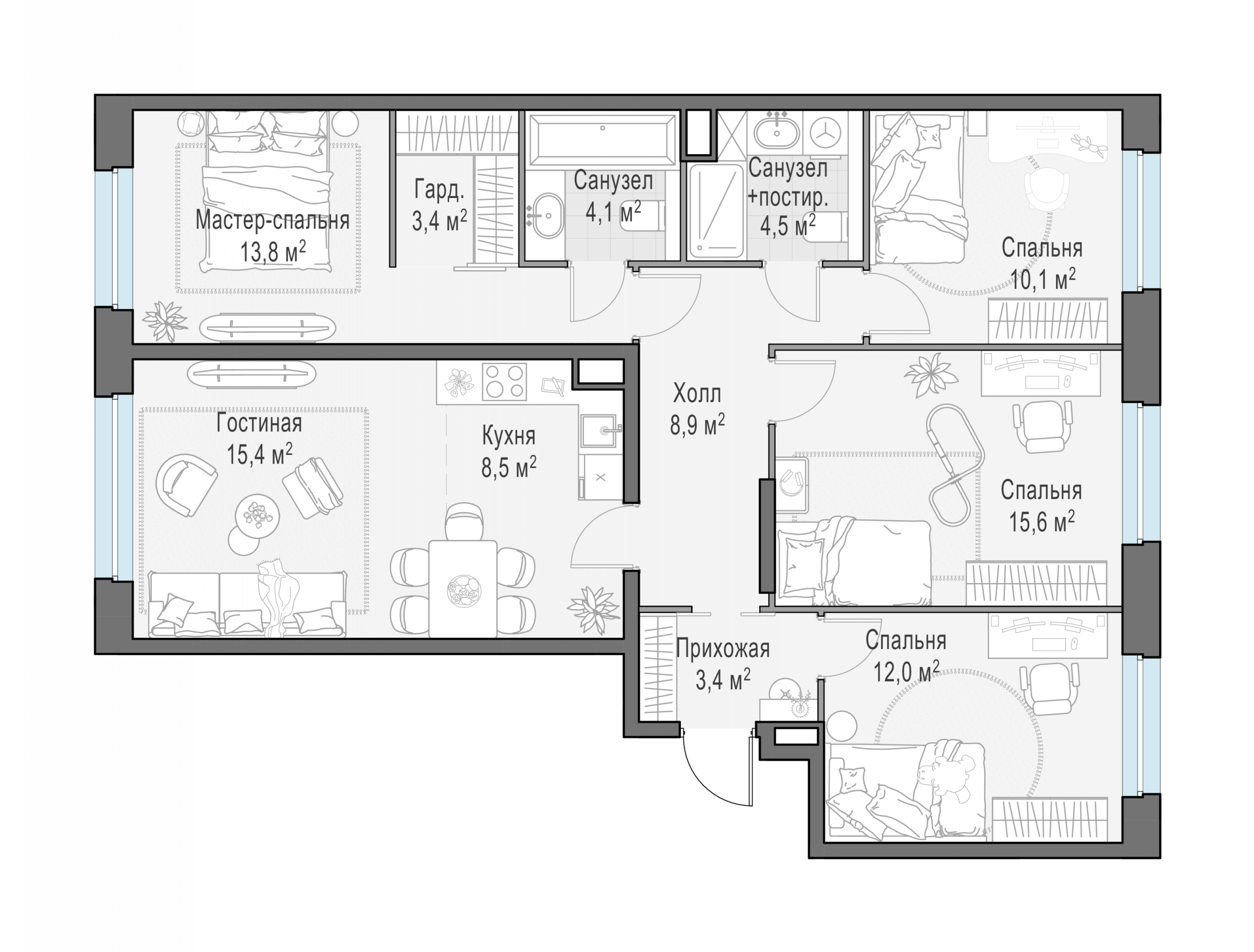 В продаже Квартира №103 площадью 99.7 м² стоимостью 16 460 000 ₽ в ЖК Белый Град от застройщика Инград ✓ Этаж: 14 ✓ Без отделки ✓ Ввод новостройки в эксплуатацию: III квартал 2026 ✓ Планировка на сайте
