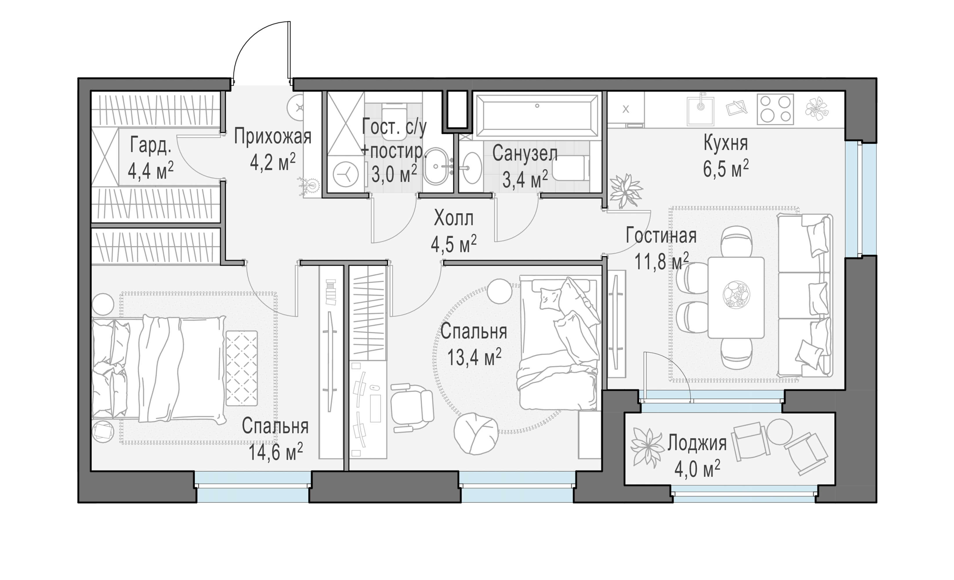 Представленные планировочные решения носят иллюстративный характер. Застройщик передаёт объект с планировкой, указанной в договоре участия в долевом строительстве. Любая перепланировка должна соответствовать требованиям государственных органов.
