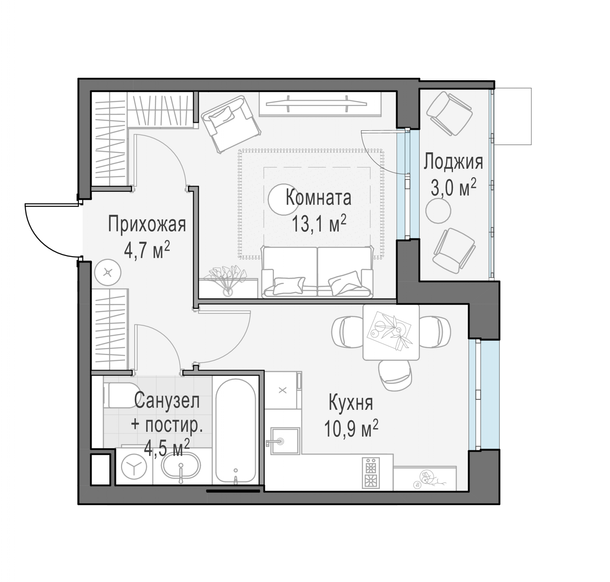 Представленные планировочные решения носят иллюстративный характер. Застройщик передаёт объект с планировкой, указанной в договоре участия в долевом строительстве. Любая перепланировка должна соответствовать требованиям государственных органов.