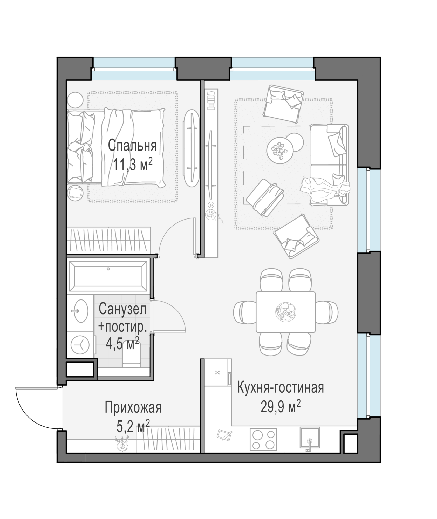 Представленные планировочные решения носят иллюстративный характер. Застройщик передаёт объект с планировкой, указанной в договоре участия в долевом строительстве. Любая перепланировка должна соответствовать требованиям государственных органов.