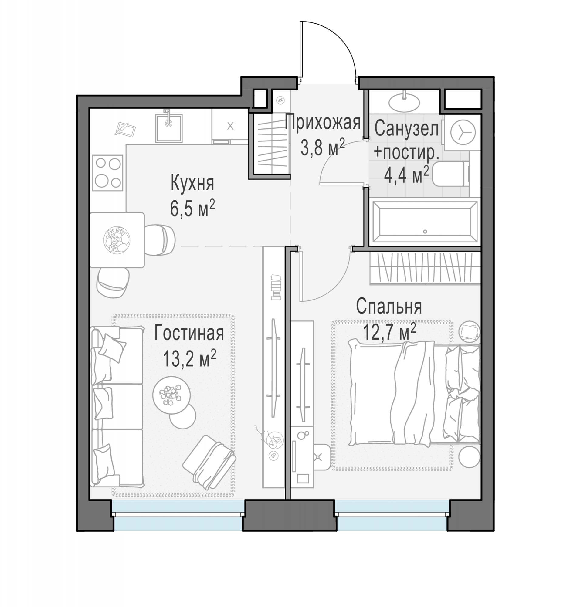 Представленные планировочные решения носят иллюстративный характер. Застройщик передаёт объект с планировкой, указанной в договоре участия в долевом строительстве. Любая перепланировка должна соответствовать требованиям государственных органов.
