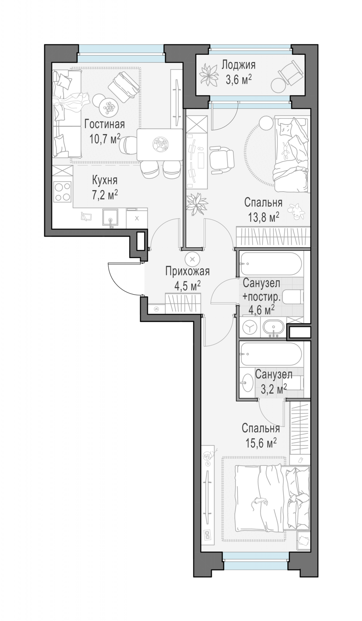 Представленные планировочные решения носят иллюстративный характер. Застройщик передаёт объект с планировкой, указанной в договоре участия в долевом строительстве. Любая перепланировка должна соответствовать требованиям государственных органов.