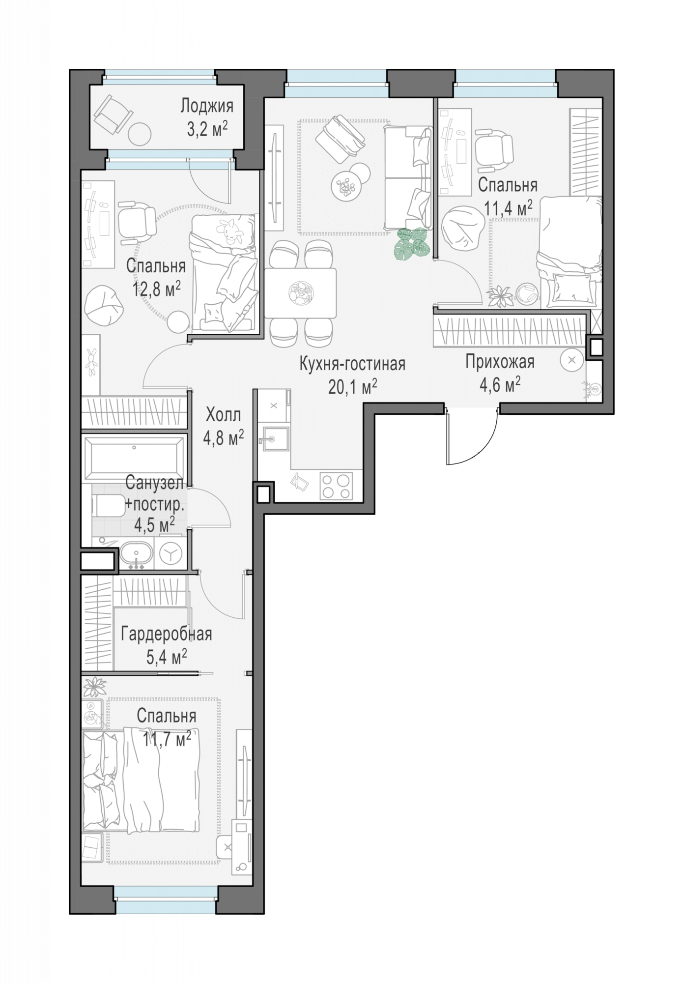 Представленные планировочные решения носят иллюстративный характер. Застройщик передаёт объект с планировкой, указанной в договоре участия в долевом строительстве. Любая перепланировка должна соответствовать требованиям государственных органов.