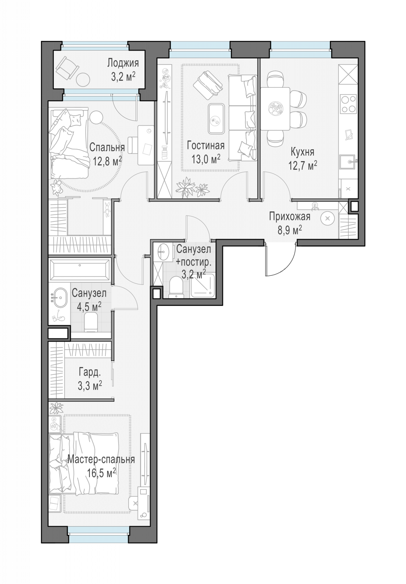 Представленные планировочные решения носят иллюстративный характер. Застройщик передаёт объект с планировкой, указанной в договоре участия в долевом строительстве. Любая перепланировка должна соответствовать требованиям государственных органов.