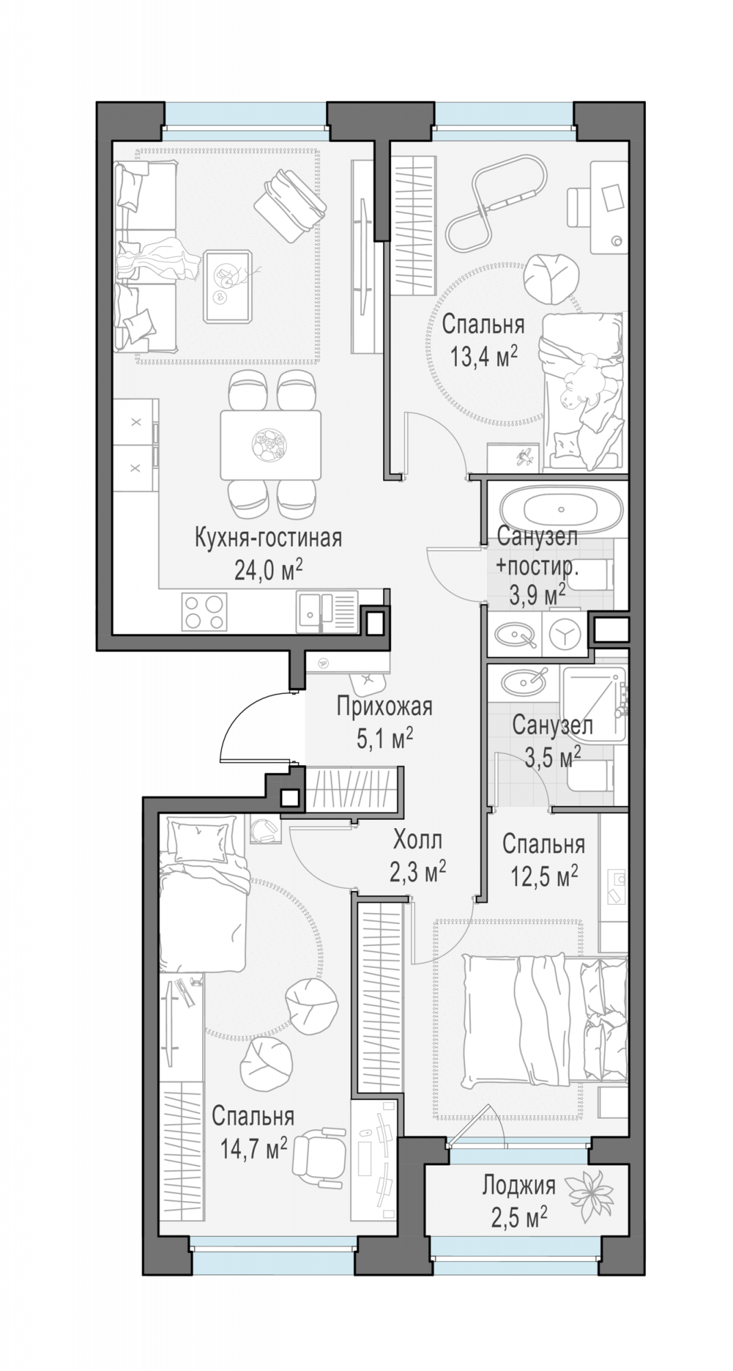 Представленные планировочные решения носят иллюстративный характер. Застройщик передаёт объект с планировкой, указанной в договоре участия в долевом строительстве. Любая перепланировка должна соответствовать требованиям государственных органов.