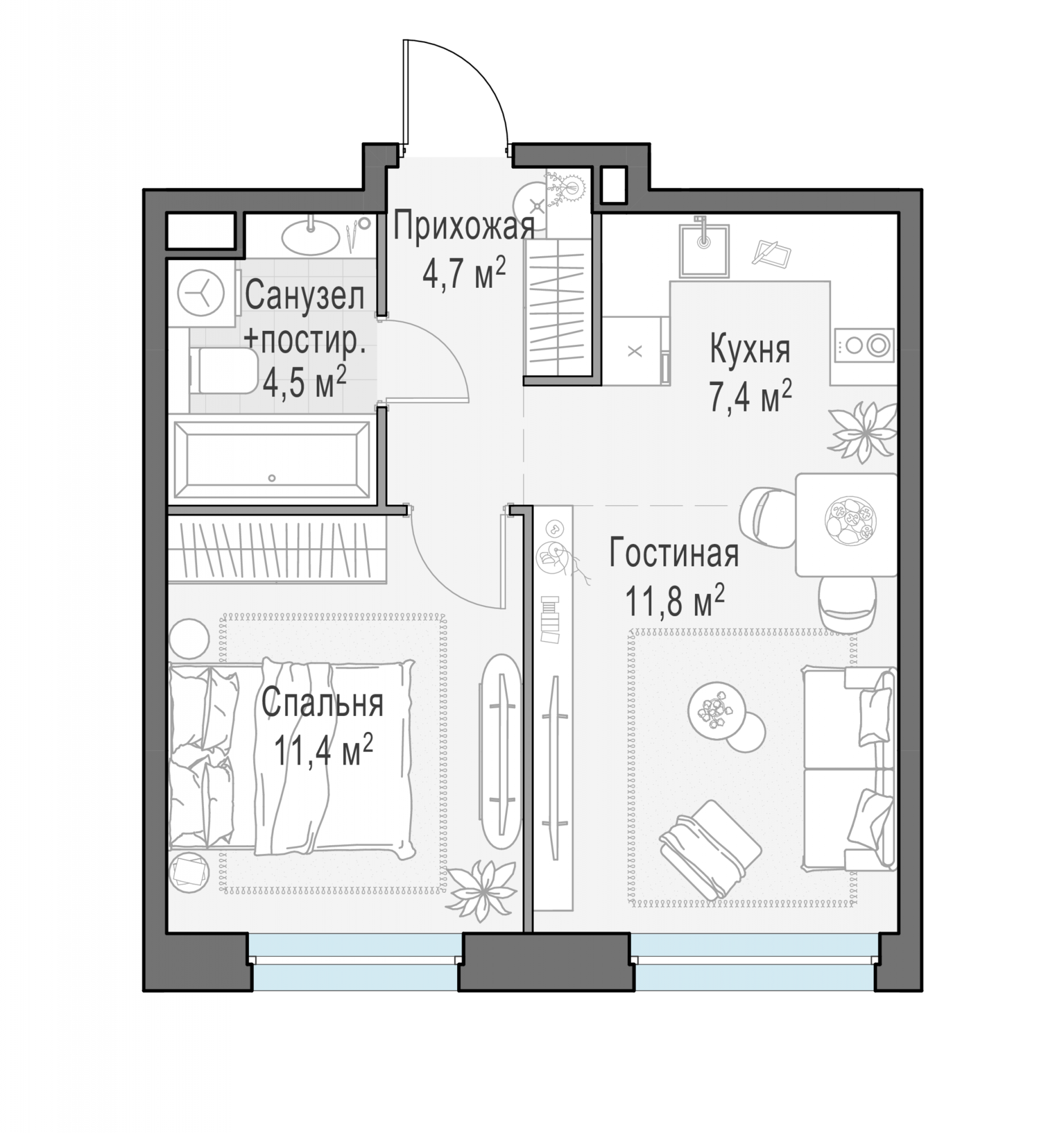 Представленные планировочные решения носят иллюстративный характер. Застройщик передаёт объект с планировкой, указанной в договоре участия в долевом строительстве. Любая перепланировка должна соответствовать требованиям государственных органов.