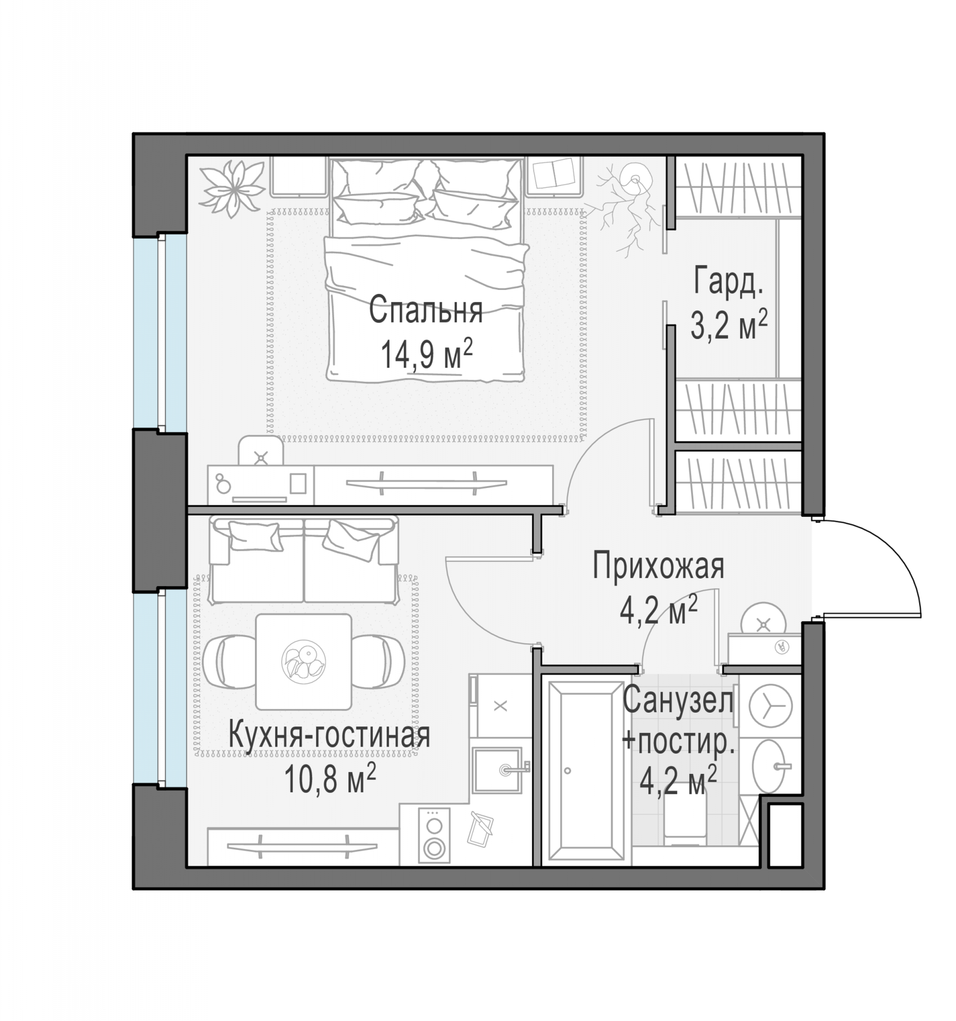 Представленные планировочные решения носят иллюстративный характер. Застройщик передаёт объект с планировкой, указанной в договоре участия в долевом строительстве. Любая перепланировка должна соответствовать требованиям государственных органов.