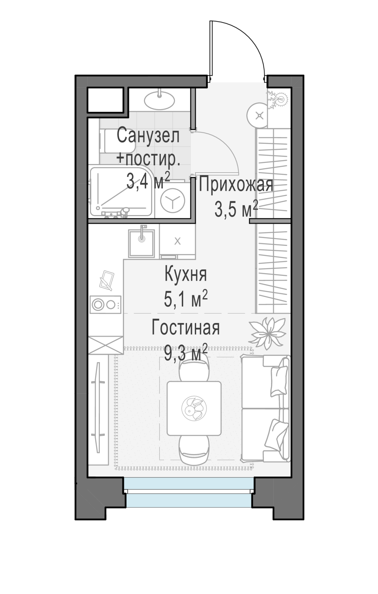 Студия, 21.3 м² №364