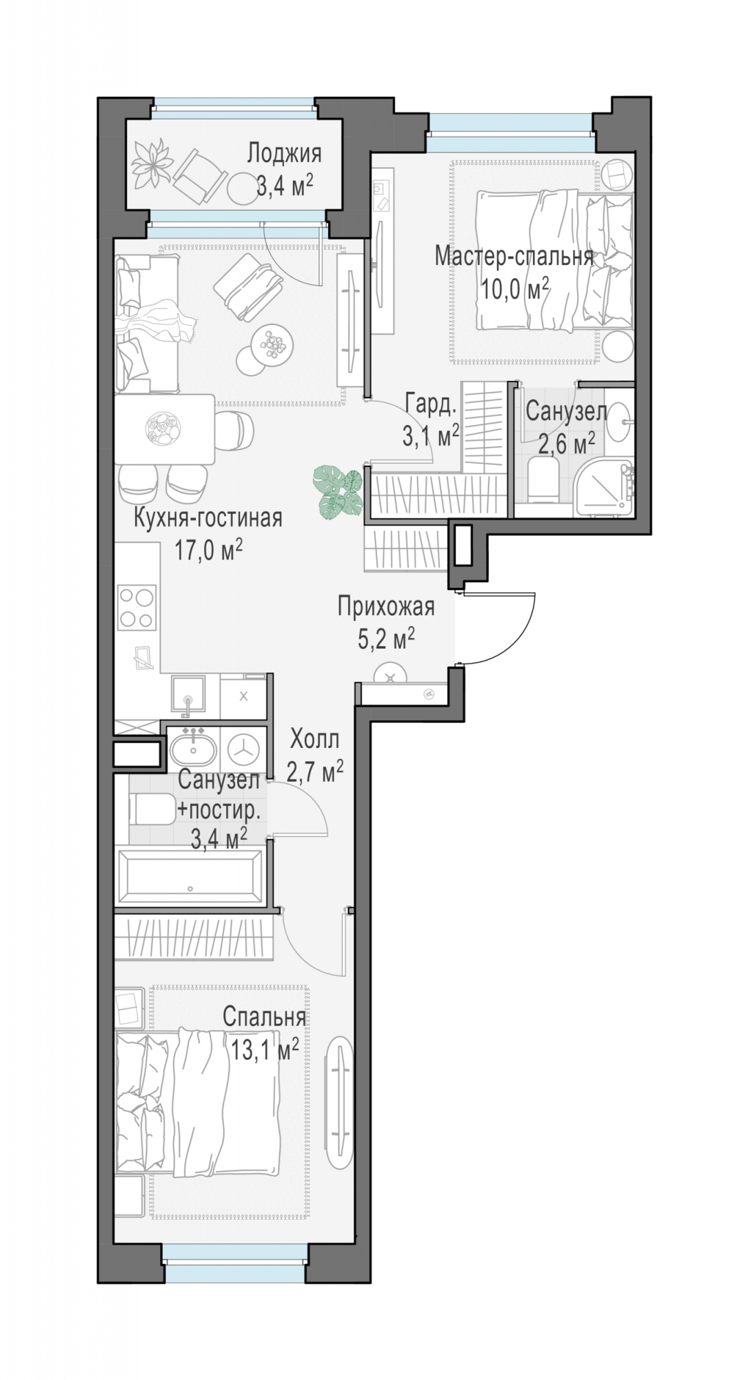 Представленные планировочные решения носят иллюстративный характер. Застройщик передаёт объект с планировкой, указанной в договоре участия в долевом строительстве. Любая перепланировка должна соответствовать требованиям государственных органов.