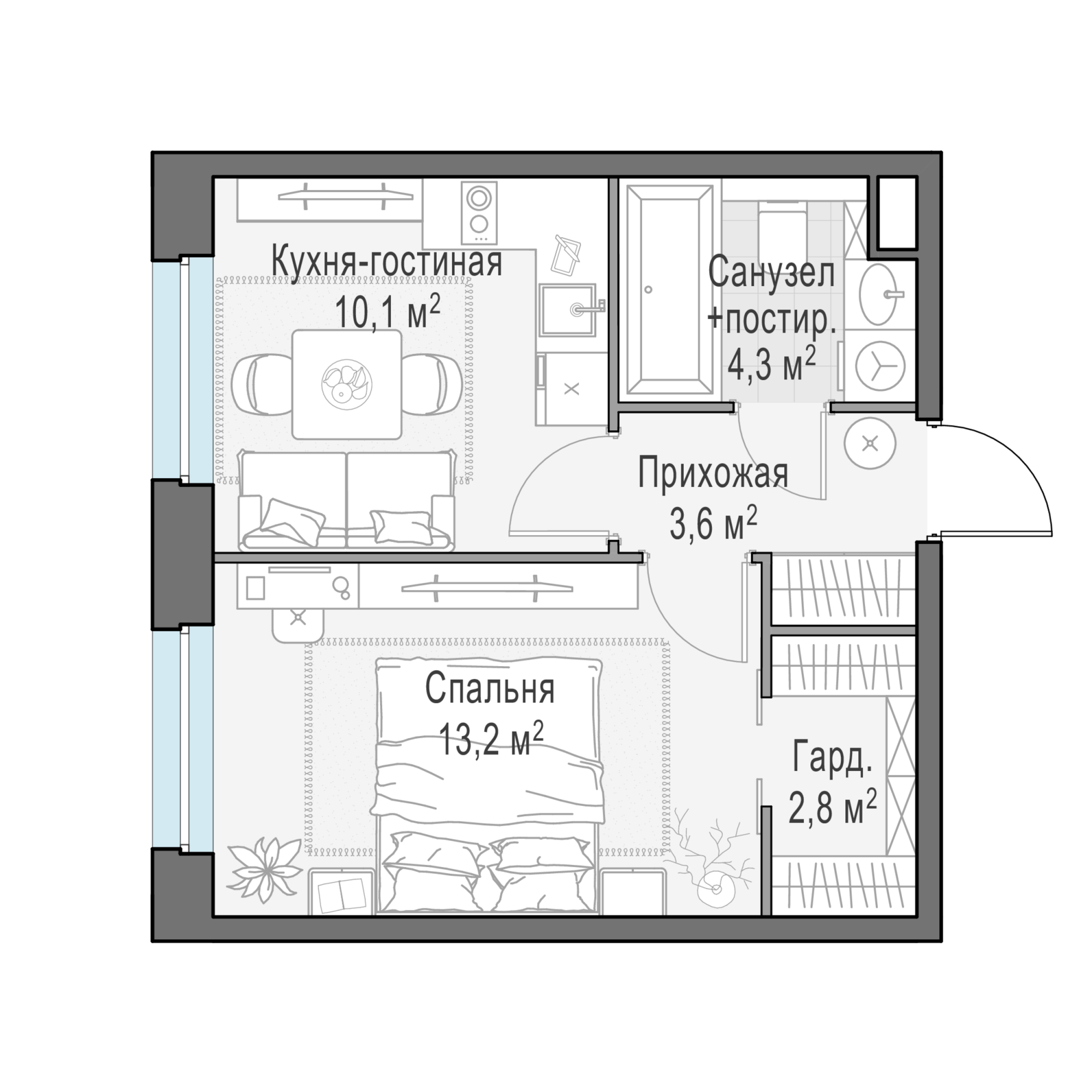 Представленные планировочные решения носят иллюстративный характер. Застройщик передаёт объект с планировкой, указанной в договоре участия в долевом строительстве. Любая перепланировка должна соответствовать требованиям государственных органов.