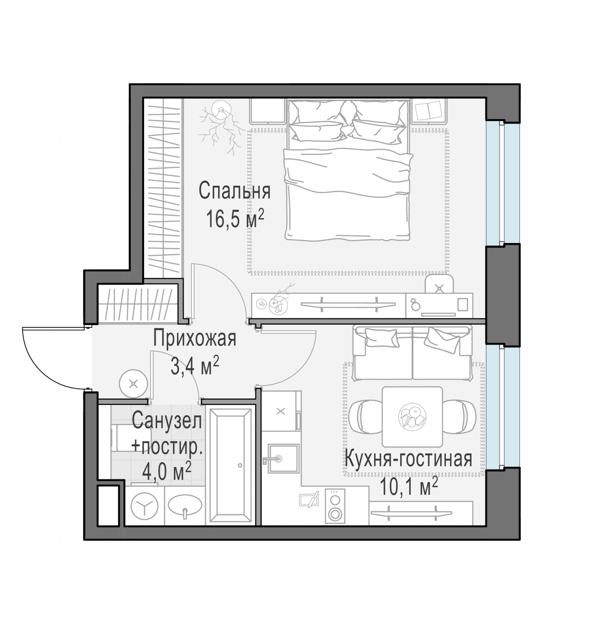 Представленные планировочные решения носят иллюстративный характер. Застройщик передаёт объект с планировкой, указанной в договоре участия в долевом строительстве. Любая перепланировка должна соответствовать требованиям государственных органов.