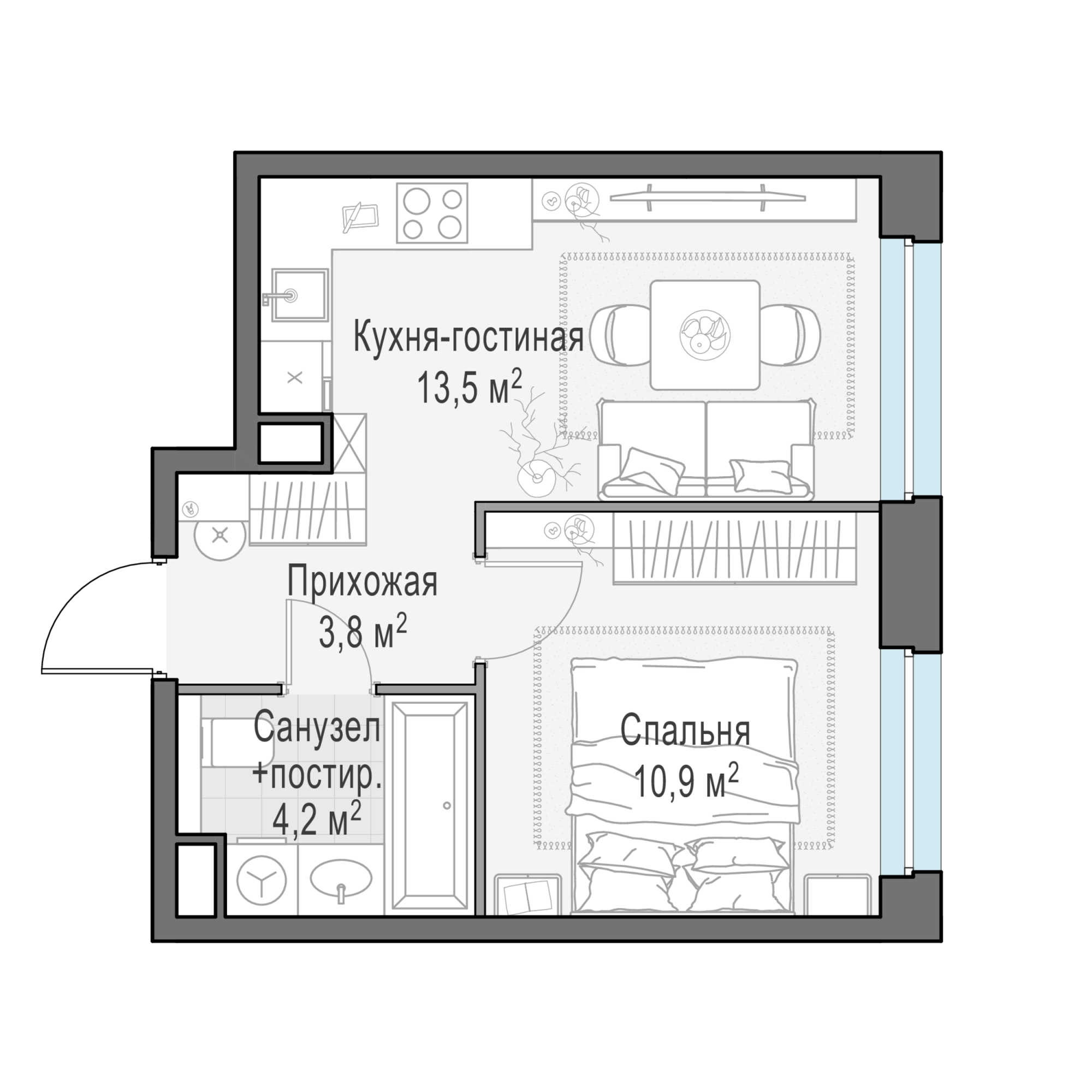 Представленные планировочные решения носят иллюстративный характер. Застройщик передаёт объект с планировкой, указанной в договоре участия в долевом строительстве. Любая перепланировка должна соответствовать требованиям государственных органов.