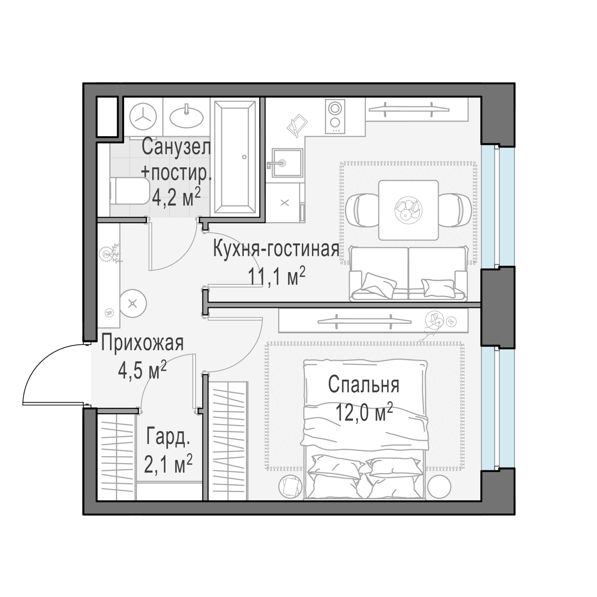 Представленные планировочные решения носят иллюстративный характер. Застройщик передаёт объект с планировкой, указанной в договоре участия в долевом строительстве. Любая перепланировка должна соответствовать требованиям государственных органов.