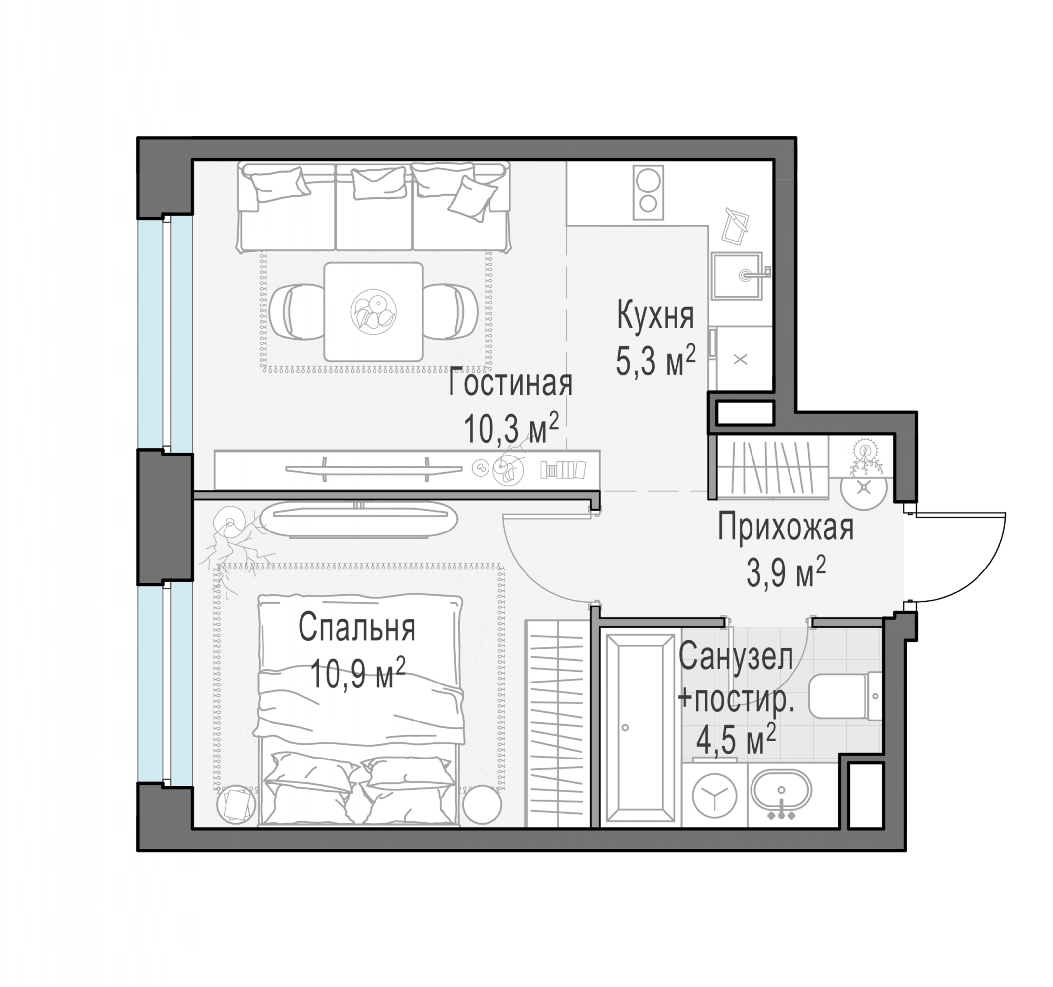 Представленные планировочные решения носят иллюстративный характер. Застройщик передаёт объект с планировкой, указанной в договоре участия в долевом строительстве. Любая перепланировка должна соответствовать требованиям государственных органов.