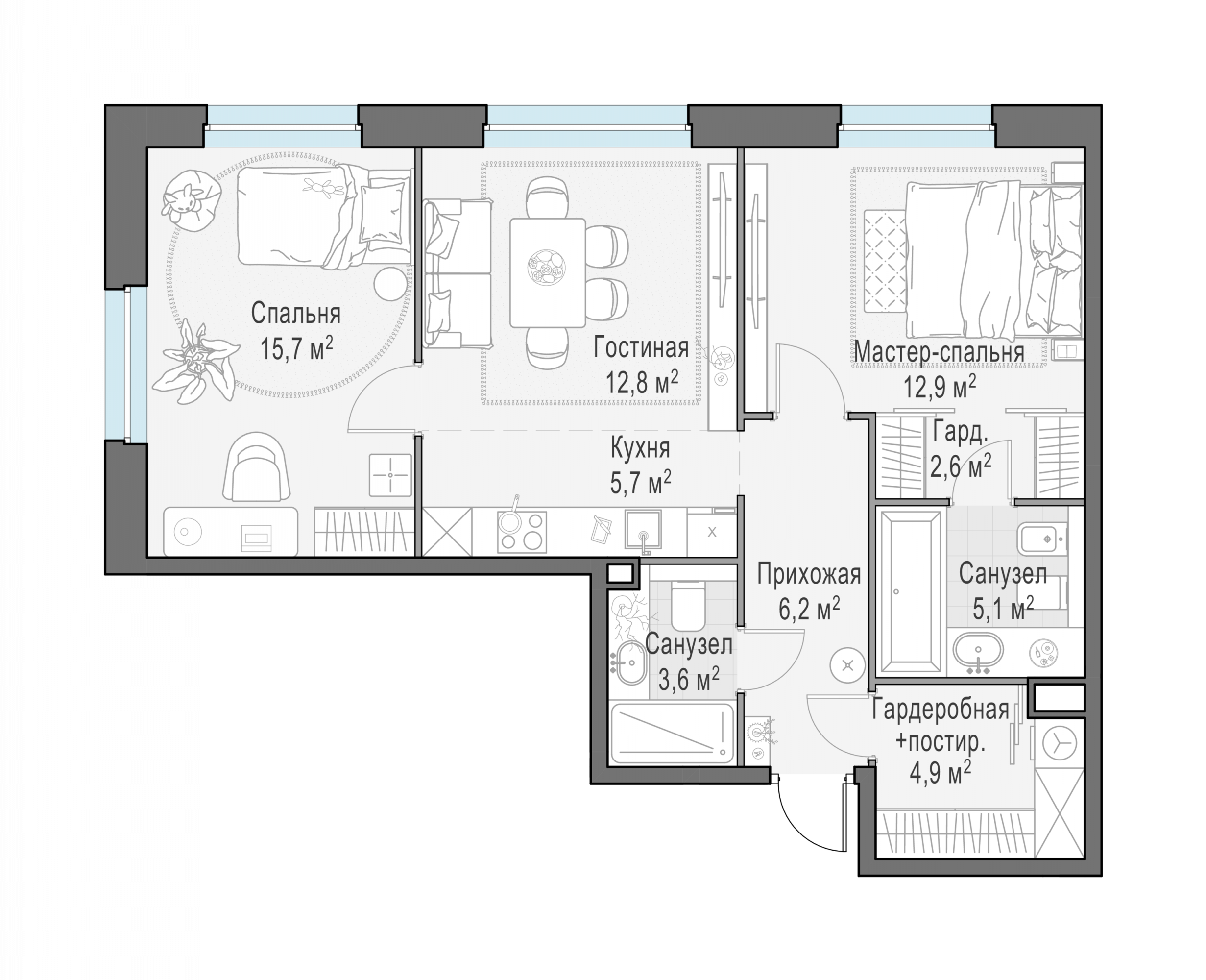 Представленные планировочные решения носят иллюстративный характер. Застройщик передаёт объект с планировкой, указанной в договоре участия в долевом строительстве. Любая перепланировка должна соответствовать требованиям государственных органов.