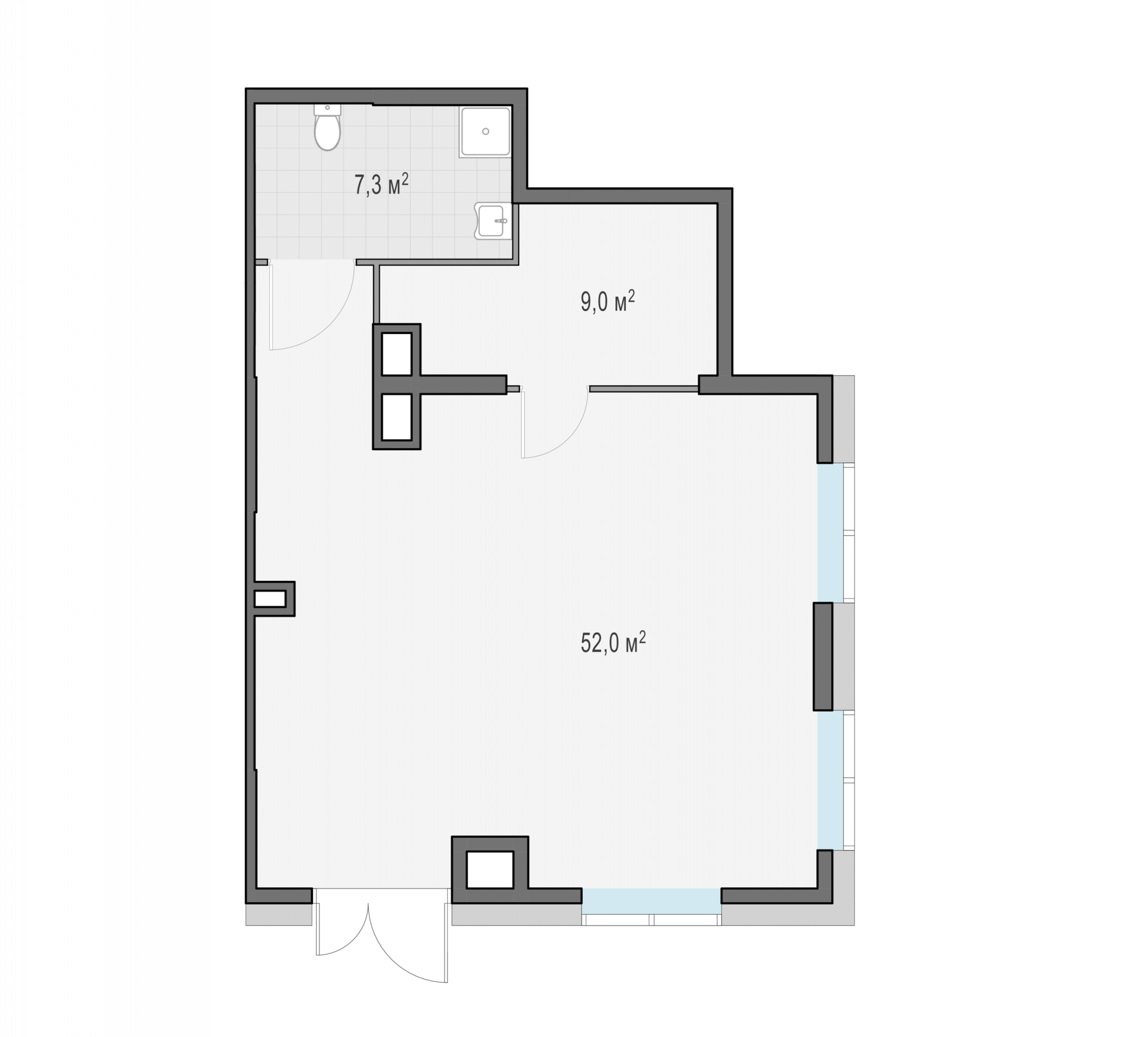 Представленные планировочные решения носят иллюстративный характер. Застройщик передаёт объект с планировкой, указанной в договоре участия в долевом строительстве. Любая перепланировка должна соответствовать требованиям государственных органов.