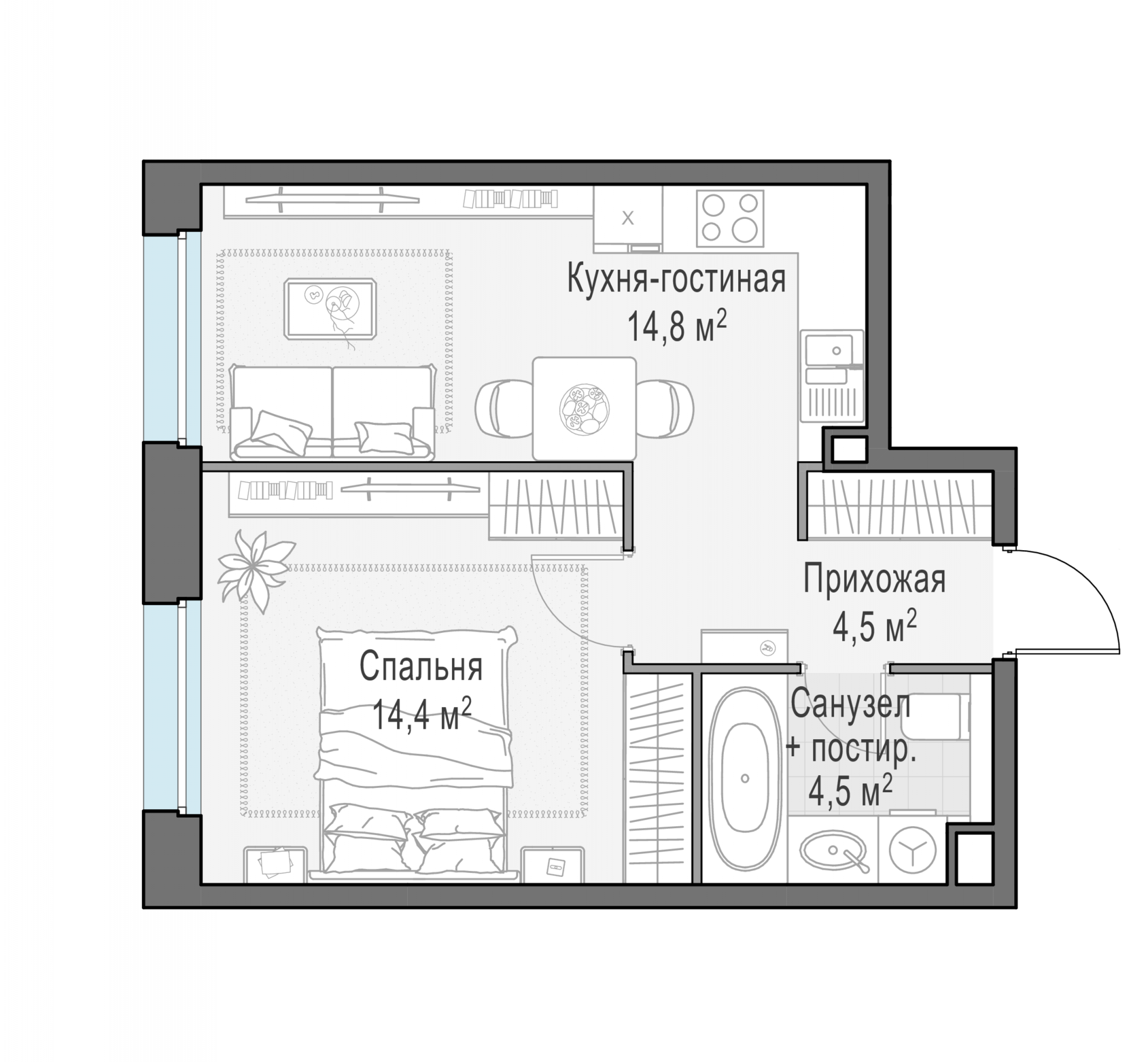 Представленные планировочные решения носят иллюстративный характер. Застройщик передаёт объект с планировкой, указанной в договоре участия в долевом строительстве. Любая перепланировка должна соответствовать требованиям государственных органов.