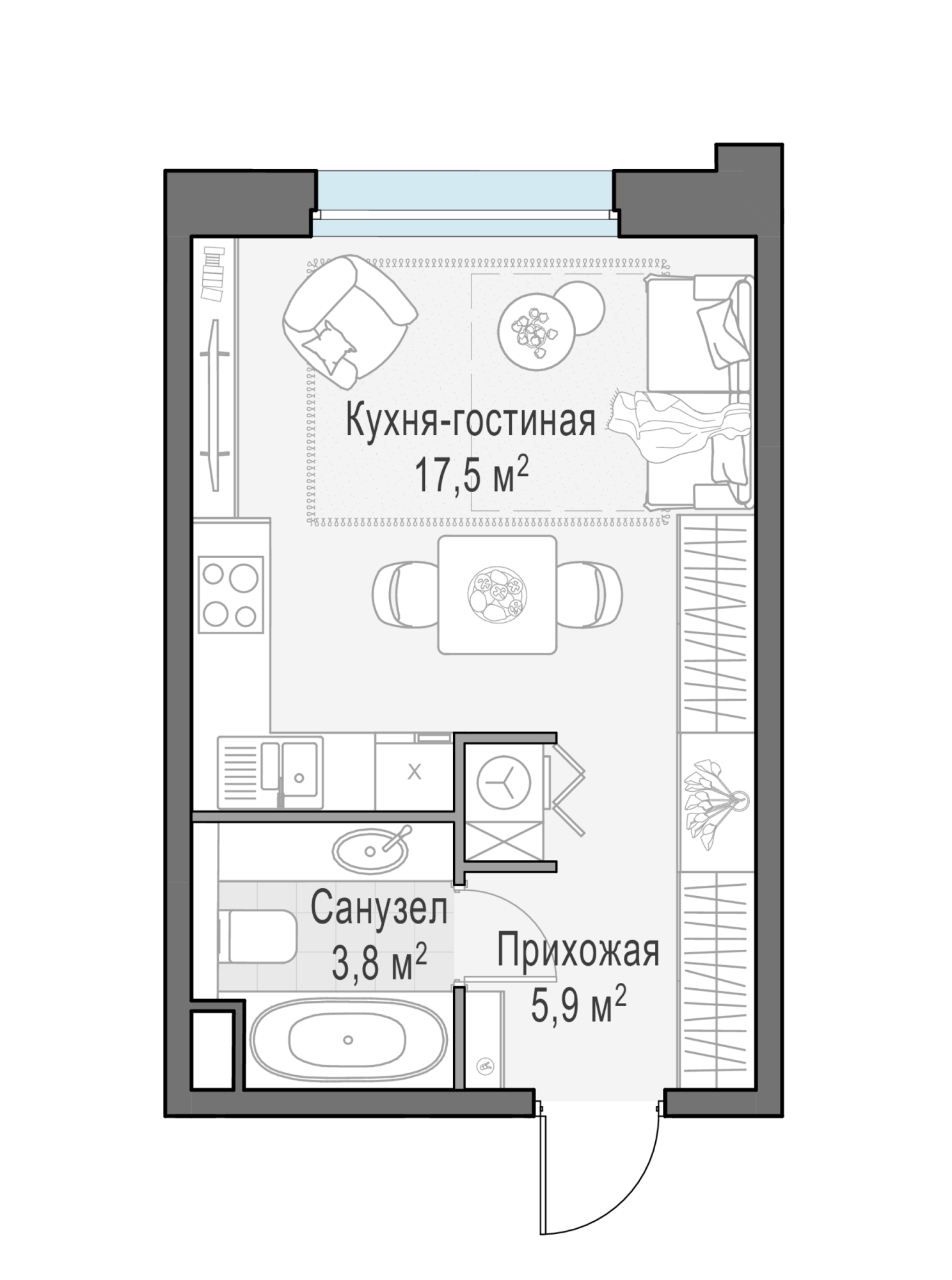 Студия, 27.3 м² №44