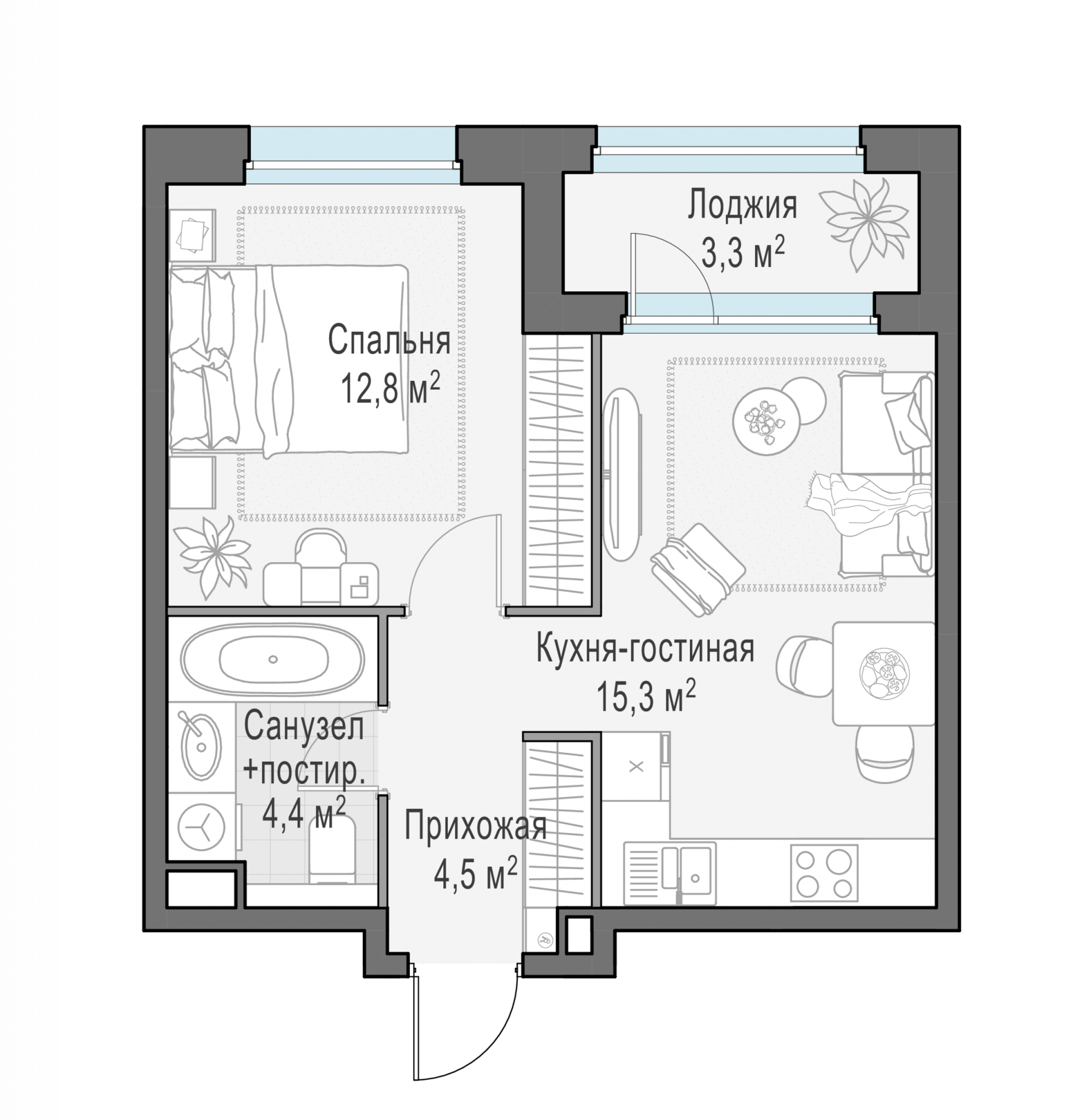 Представленные планировочные решения носят иллюстративный характер. Застройщик передаёт объект с планировкой, указанной в договоре участия в долевом строительстве. Любая перепланировка должна соответствовать требованиям государственных органов.