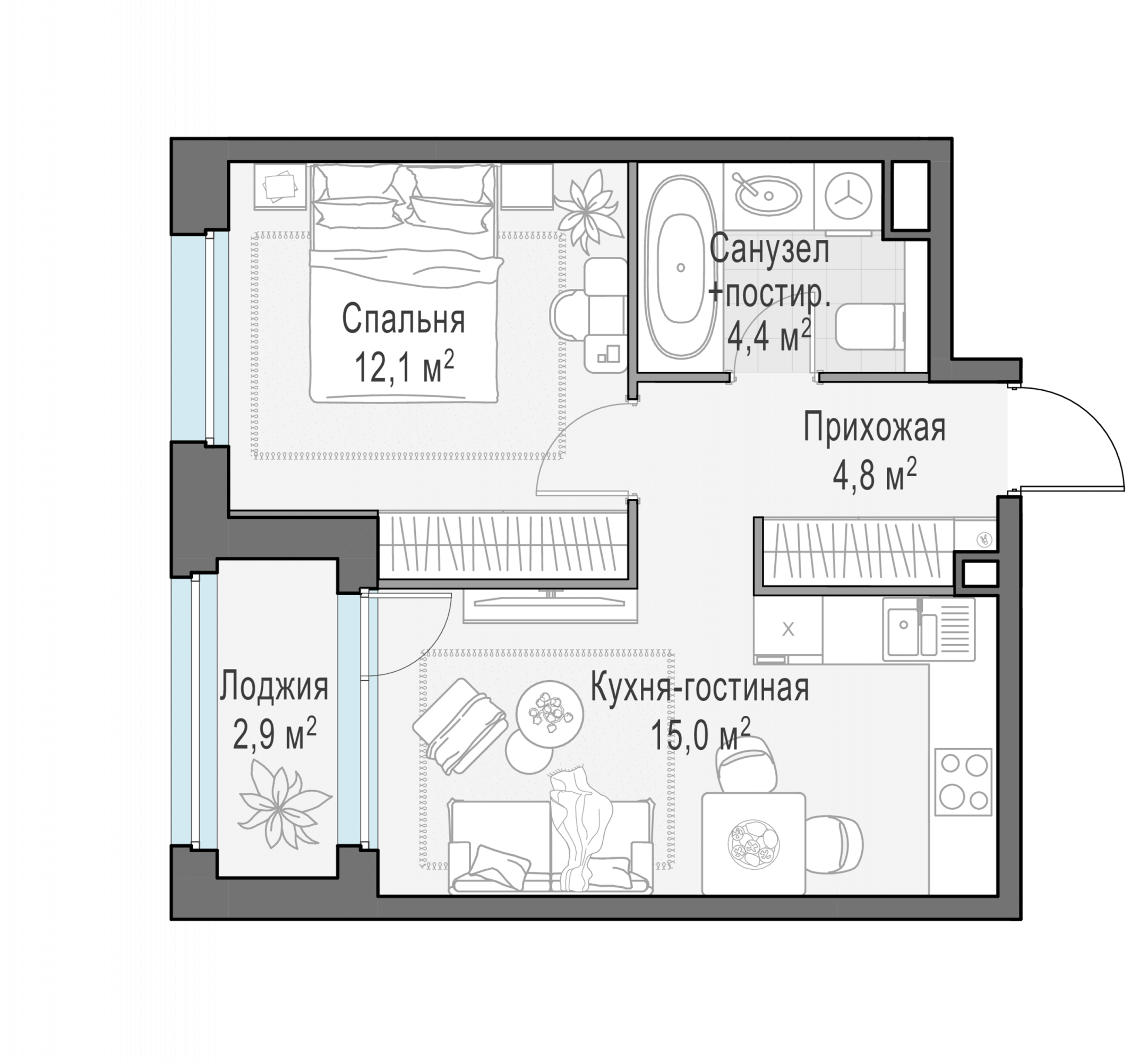 Представленные планировочные решения носят иллюстративный характер. Застройщик передаёт объект с планировкой, указанной в договоре участия в долевом строительстве. Любая перепланировка должна соответствовать требованиям государственных органов.