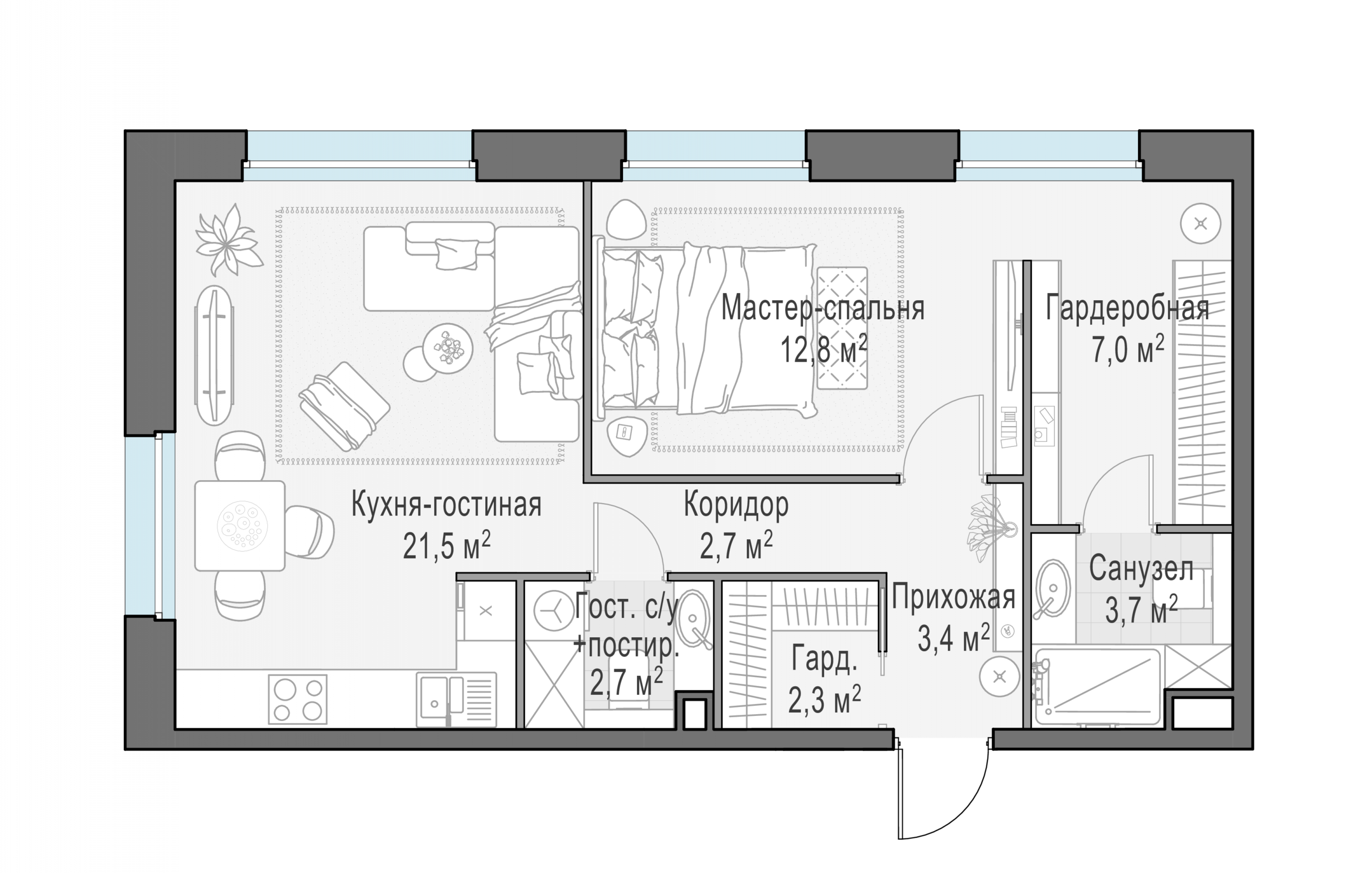Представленные планировочные решения носят иллюстративный характер. Застройщик передаёт объект с планировкой, указанной в договоре участия в долевом строительстве. Любая перепланировка должна соответствовать требованиям государственных органов.