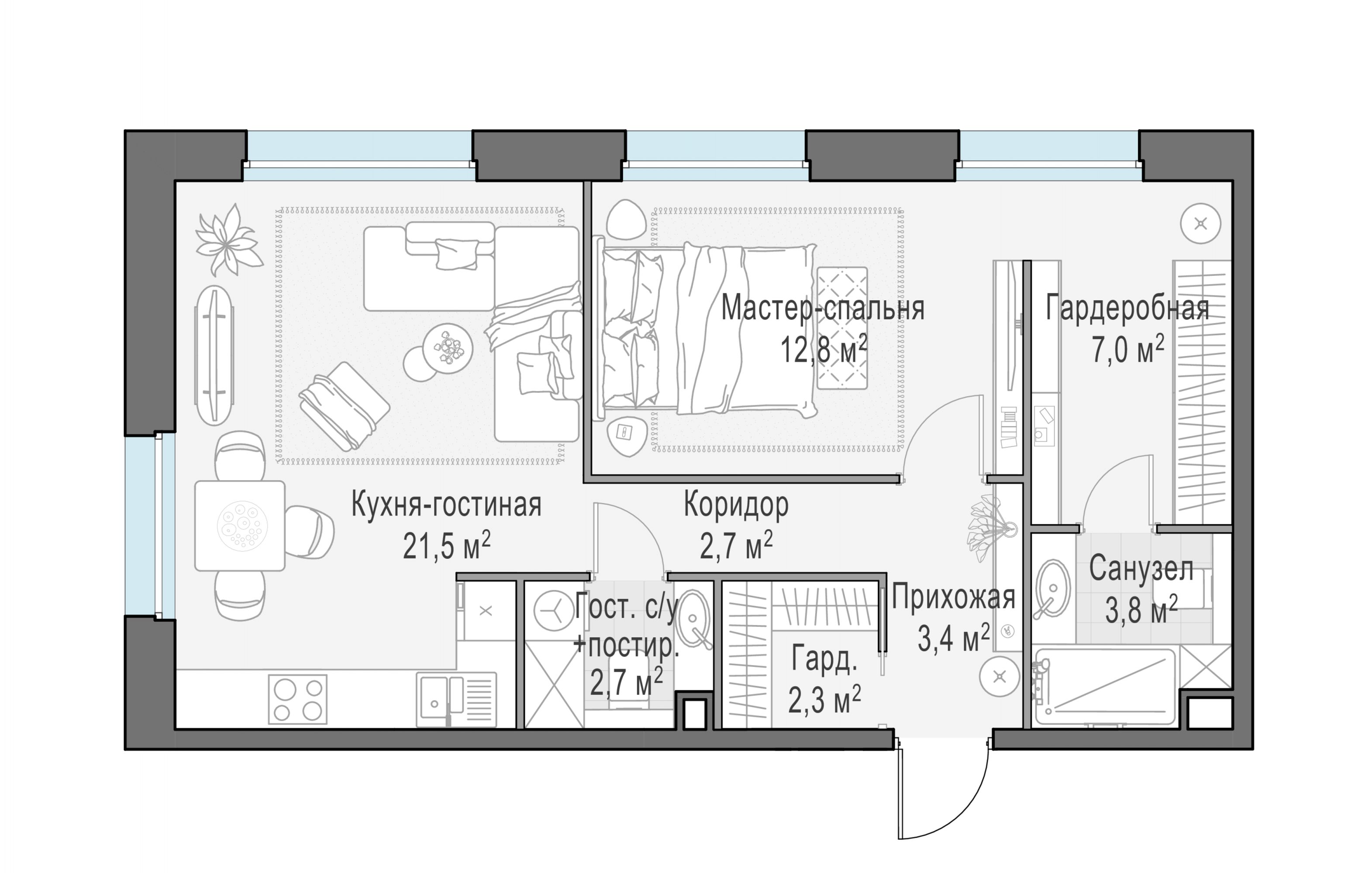 Представленные планировочные решения носят иллюстративный характер. Застройщик передаёт объект с планировкой, указанной в договоре участия в долевом строительстве. Любая перепланировка должна соответствовать требованиям государственных органов.