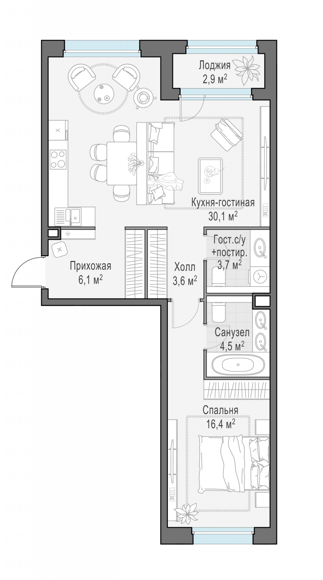 Представленные планировочные решения носят иллюстративный характер. Застройщик передаёт объект с планировкой, указанной в договоре участия в долевом строительстве. Любая перепланировка должна соответствовать требованиям государственных органов.