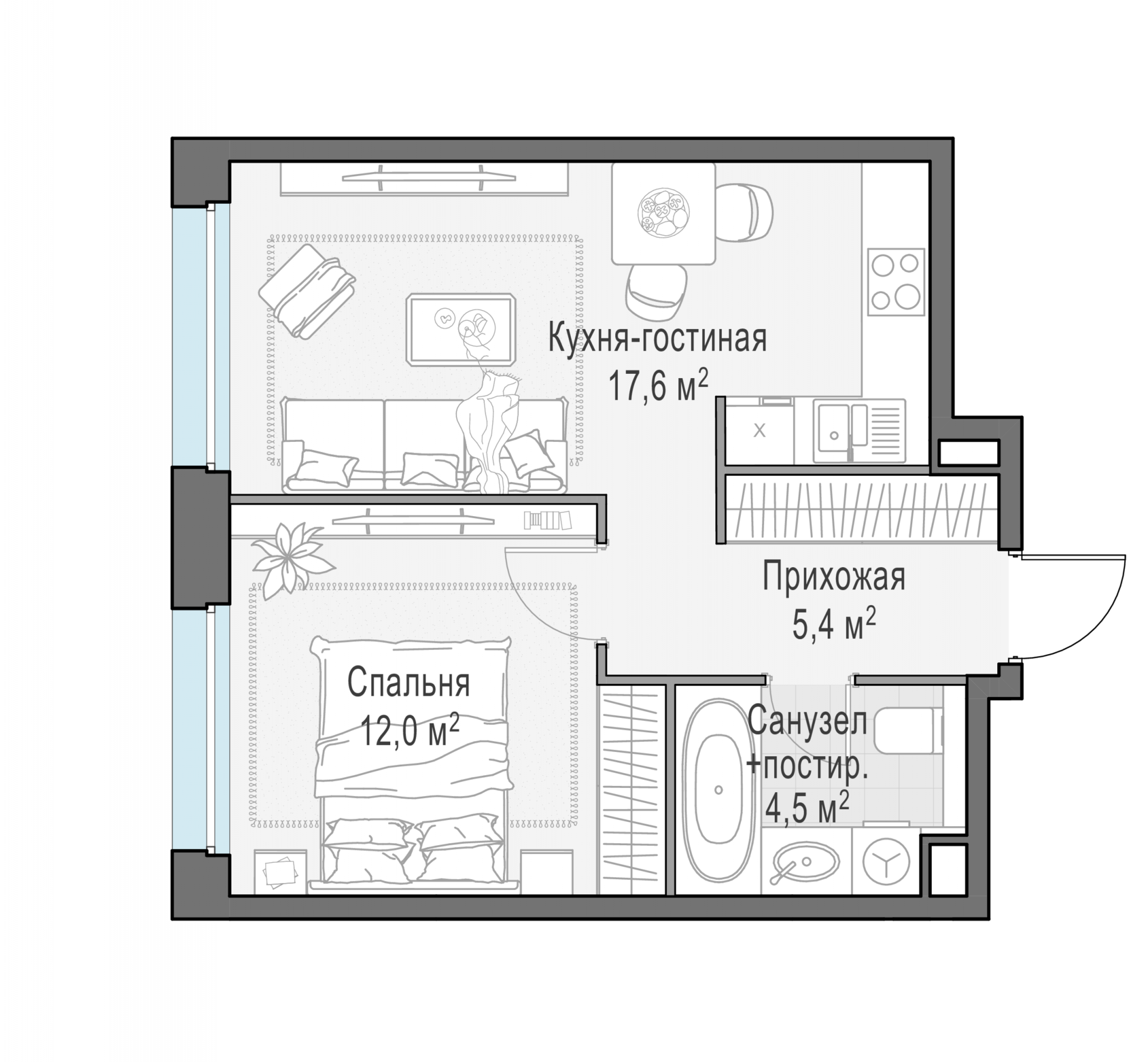 Представленные планировочные решения носят иллюстративный характер. Застройщик передаёт объект с планировкой, указанной в договоре участия в долевом строительстве. Любая перепланировка должна соответствовать требованиям государственных органов.