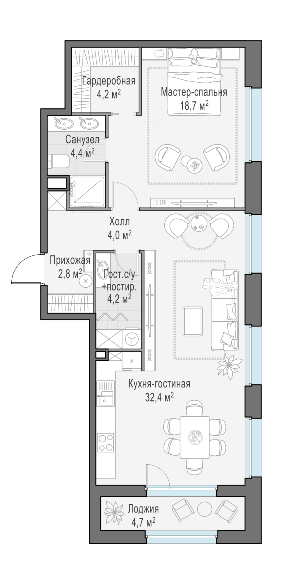 Представленные планировочные решения носят иллюстративный характер. Застройщик передаёт объект с планировкой, указанной в договоре участия в долевом строительстве. Любая перепланировка должна соответствовать требованиям государственных органов.