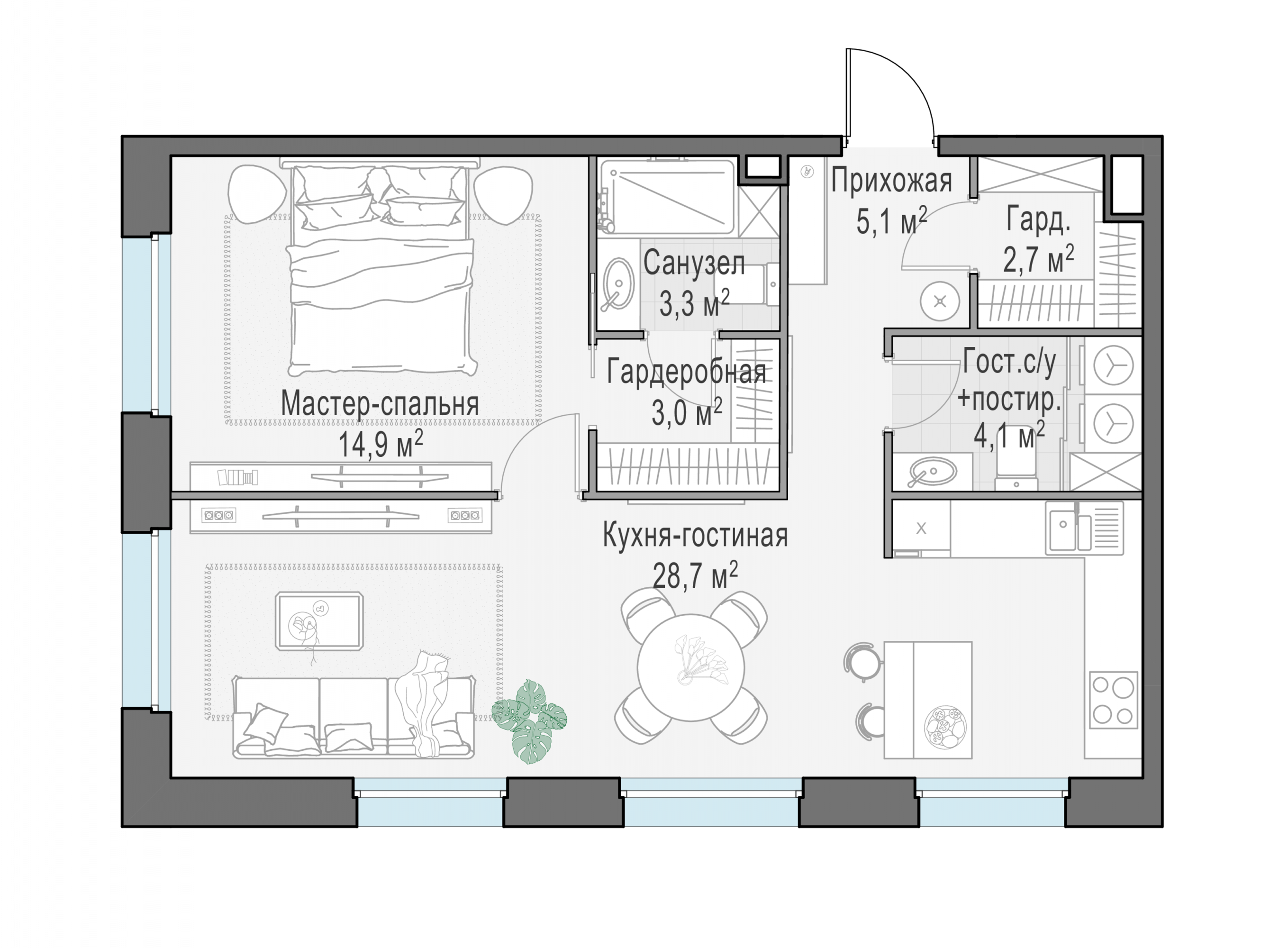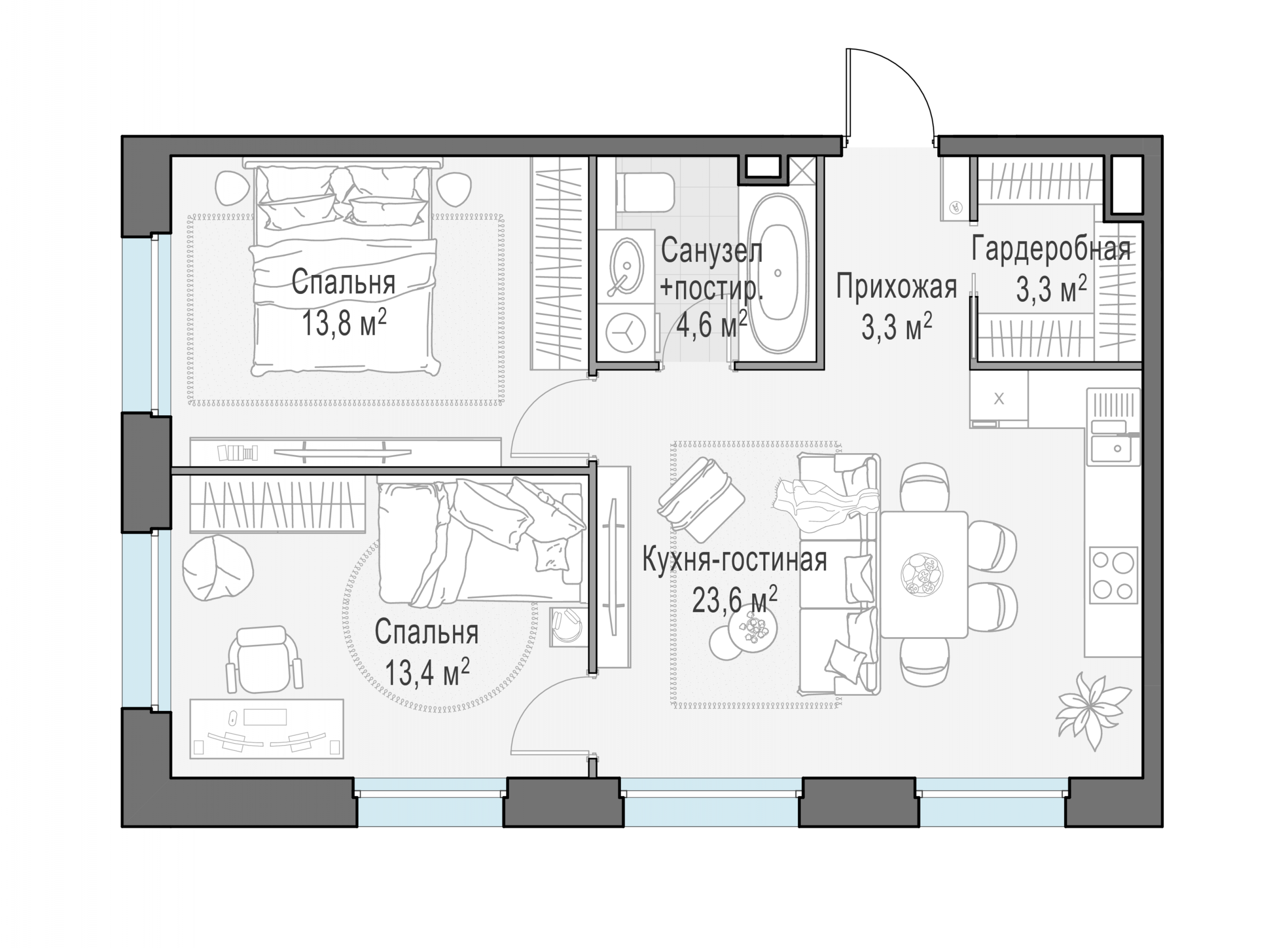 Представленные планировочные решения носят иллюстративный характер. Застройщик передаёт объект с планировкой, указанной в договоре участия в долевом строительстве. Любая перепланировка должна соответствовать требованиям государственных органов.