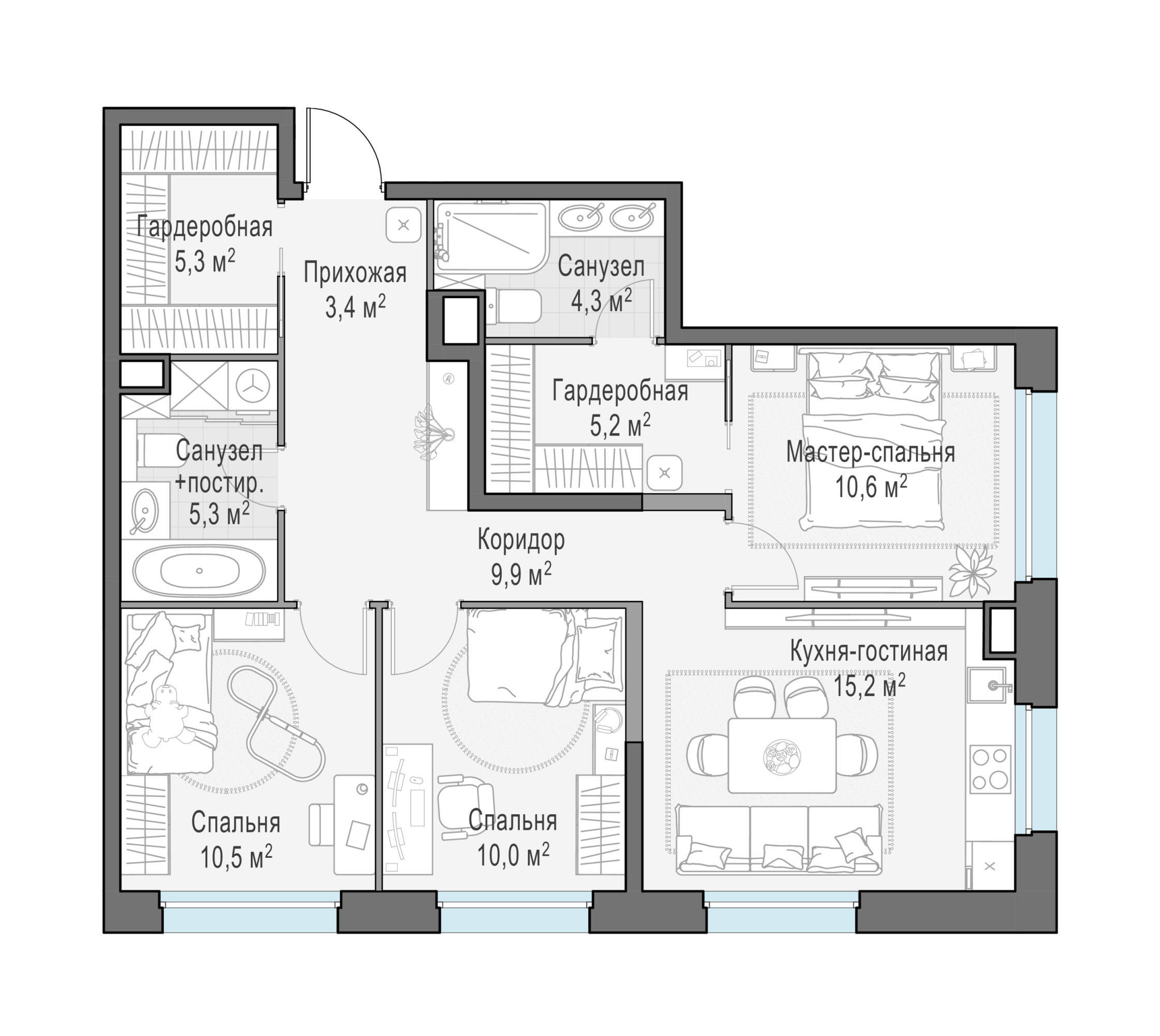 Представленные планировочные решения носят иллюстративный характер. Застройщик передаёт объект с планировкой, указанной в договоре участия в долевом строительстве. Любая перепланировка должна соответствовать требованиям государственных органов.