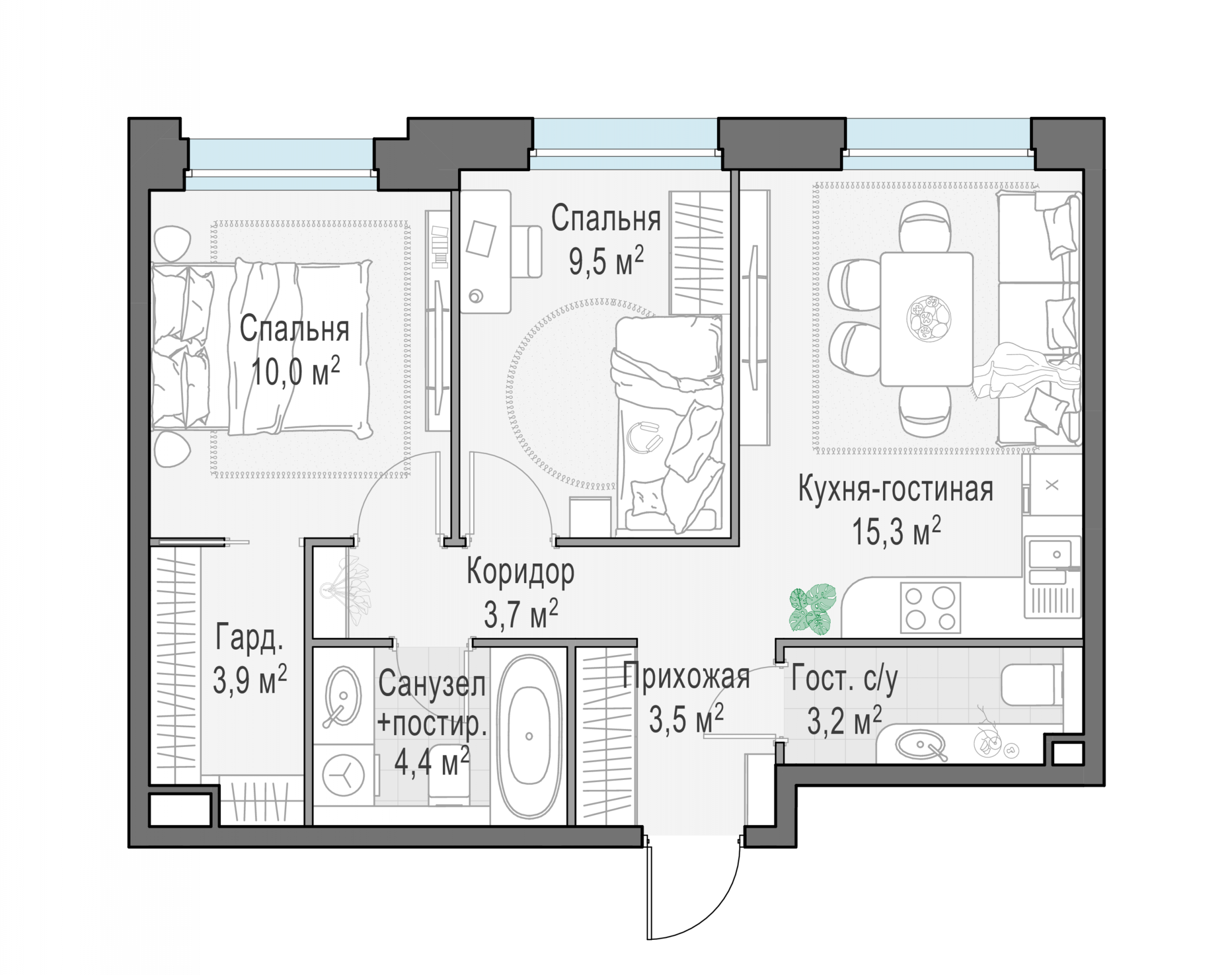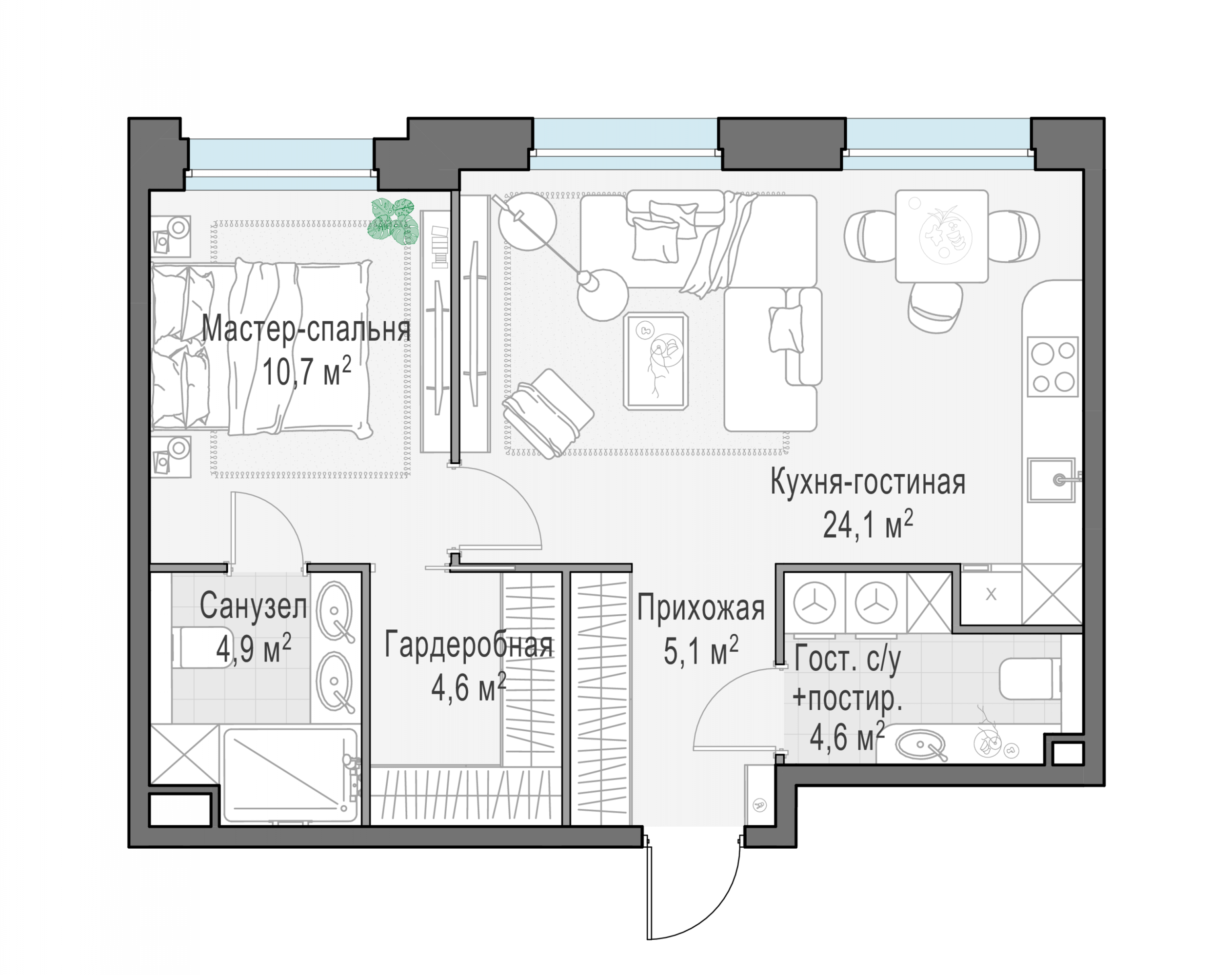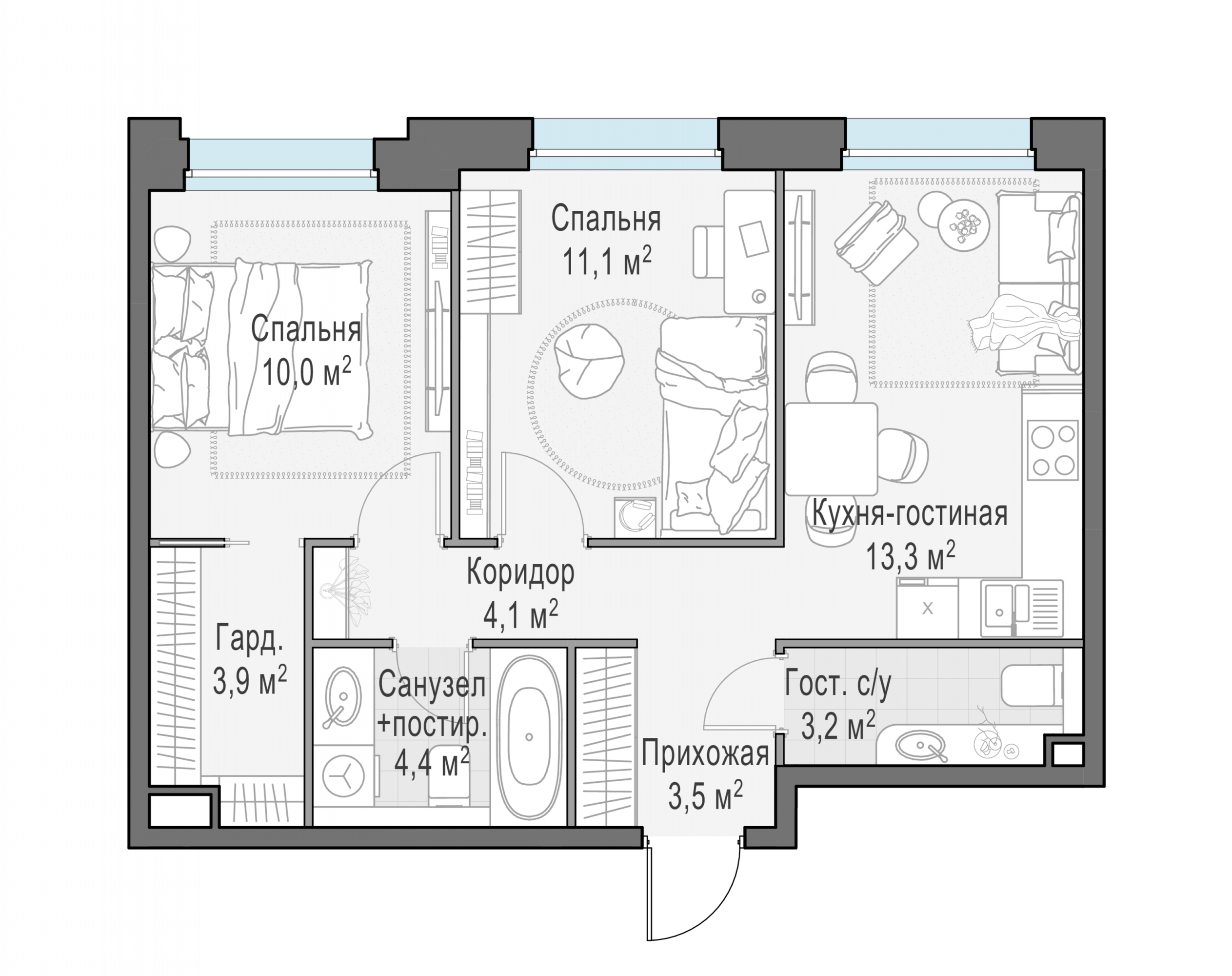 Представленные планировочные решения носят иллюстративный характер. Застройщик передаёт объект с планировкой, указанной в договоре участия в долевом строительстве. Любая перепланировка должна соответствовать требованиям государственных органов.