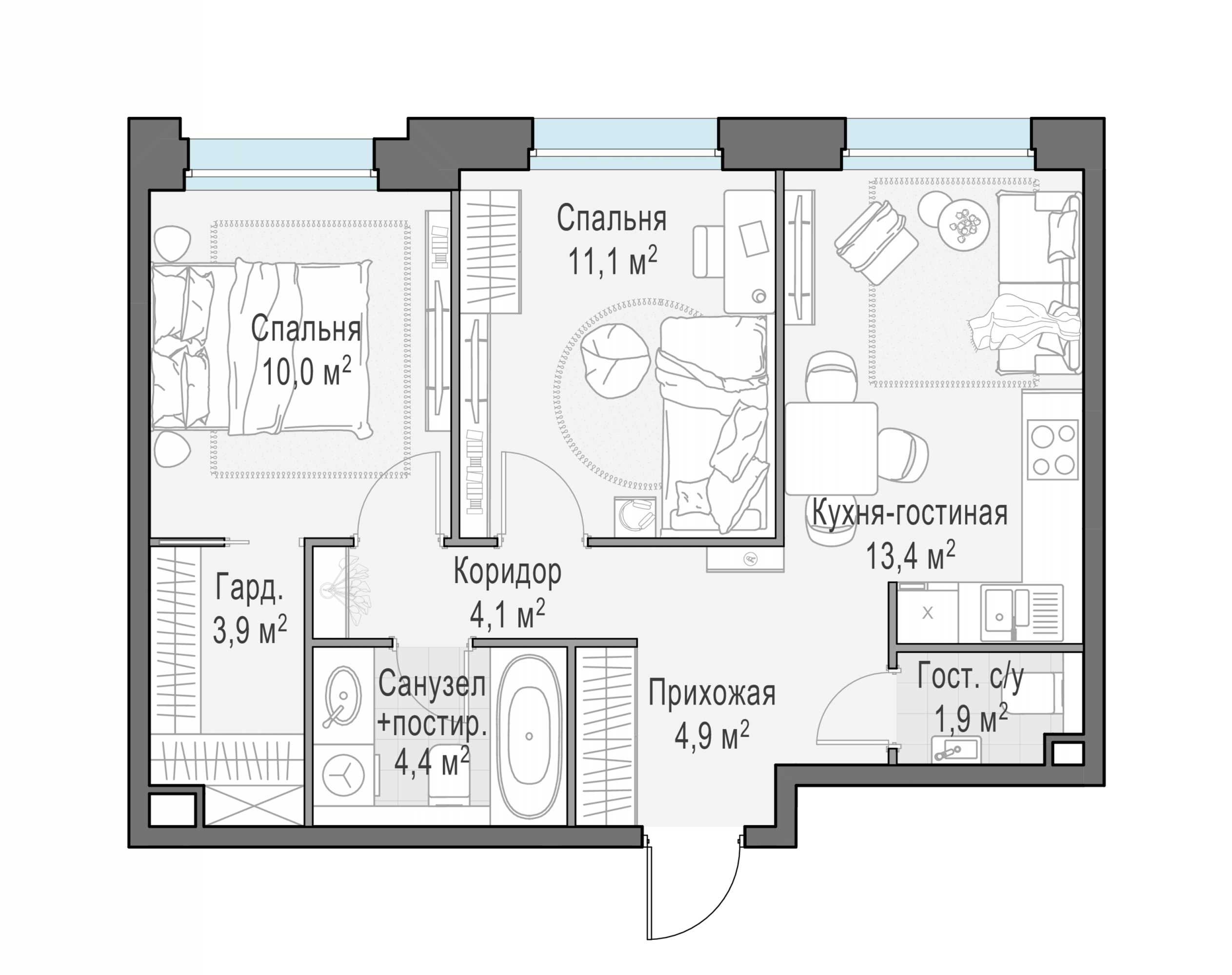 Представленные планировочные решения носят иллюстративный характер. Застройщик передаёт объект с планировкой, указанной в договоре участия в долевом строительстве. Любая перепланировка должна соответствовать требованиям государственных органов.